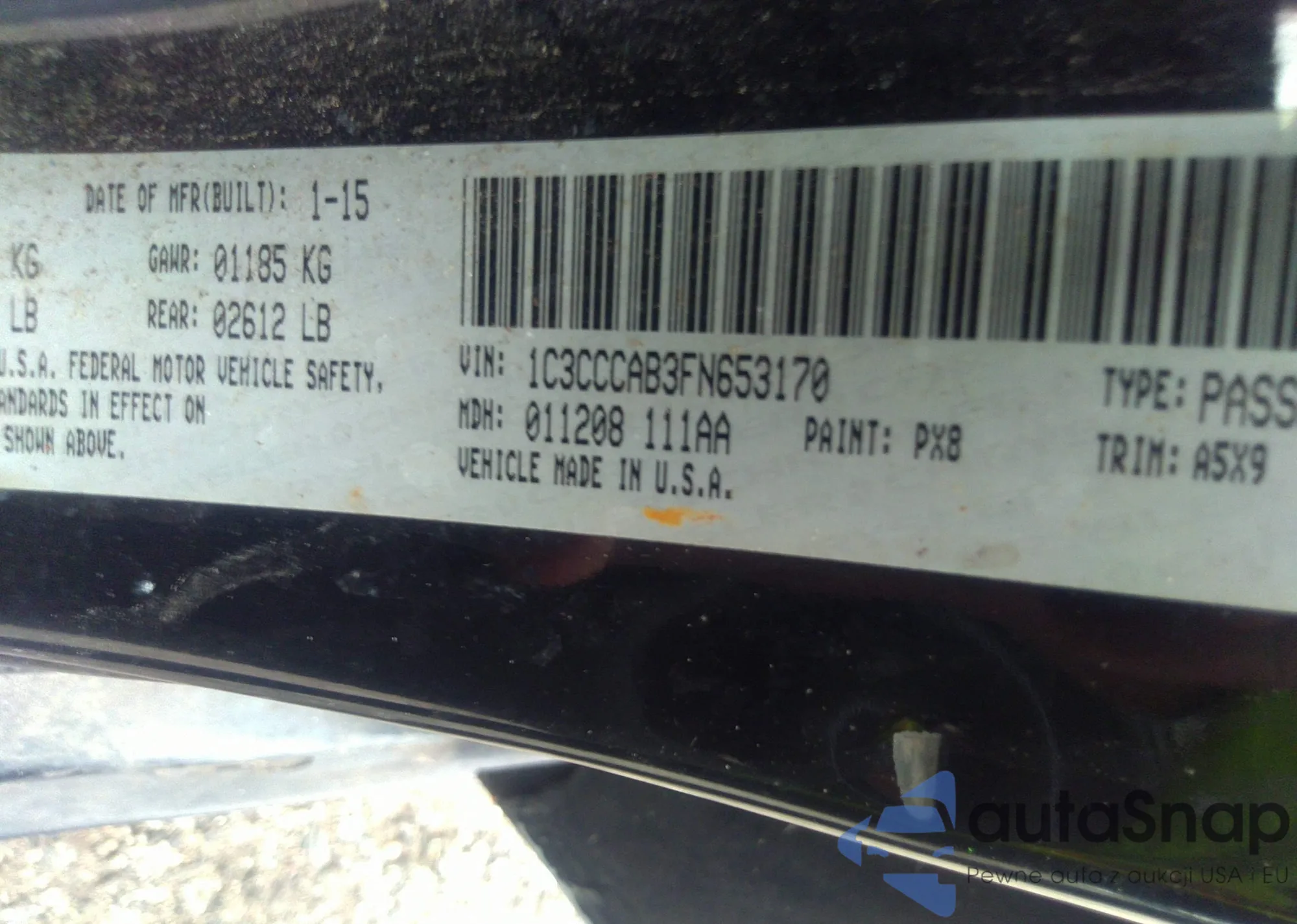 LOT: 36847989 VIN: 1C3CCCAB3FN653170