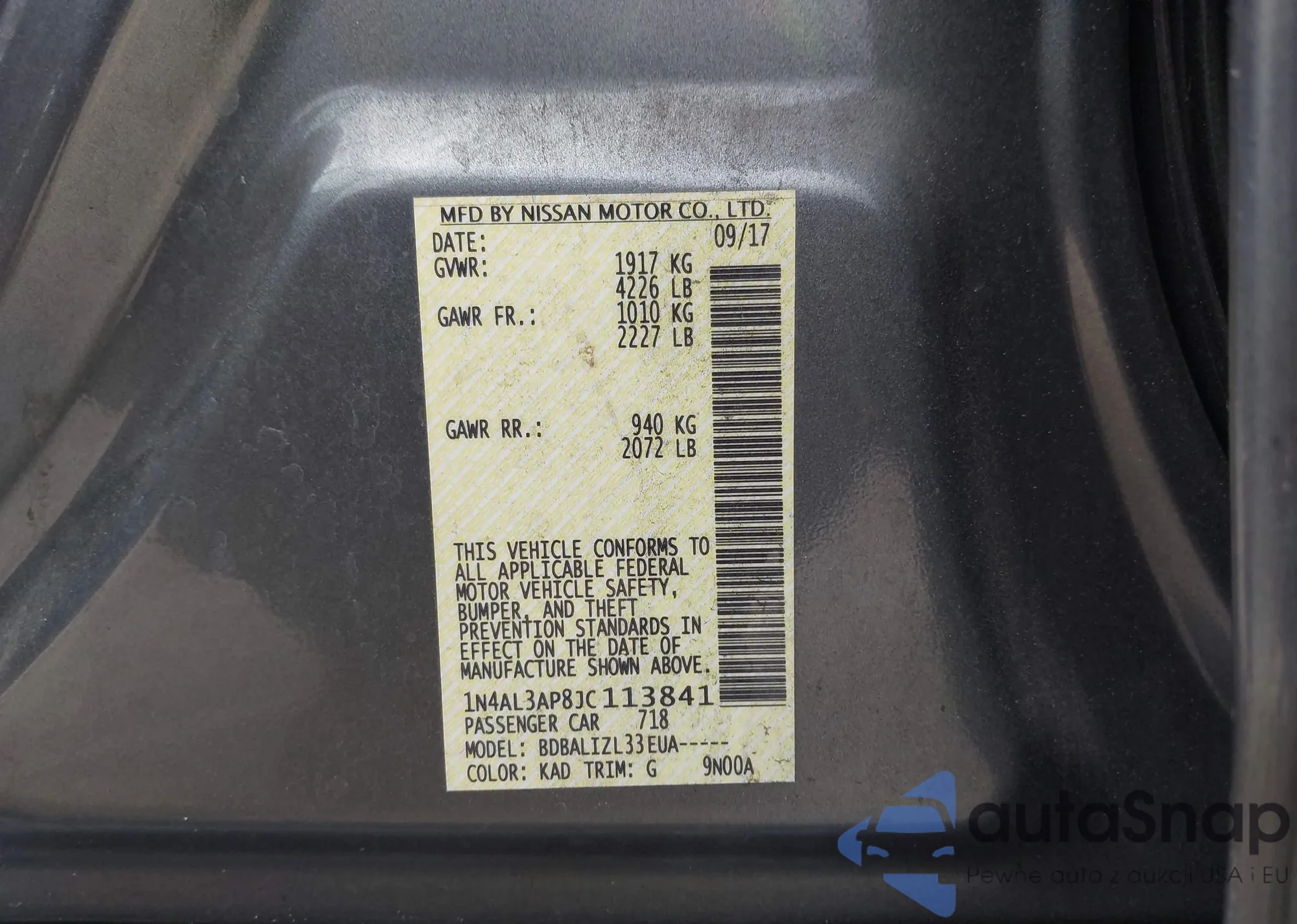 LOT: 39234524 VIN: 1N4AL3AP8JC113841