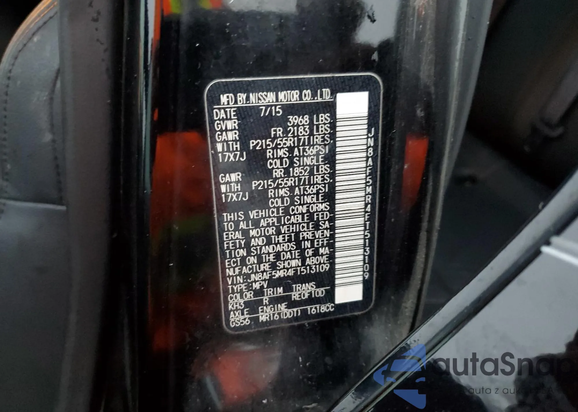 LOT: 79868774 VIN: JN8AF5MR4FT513109
