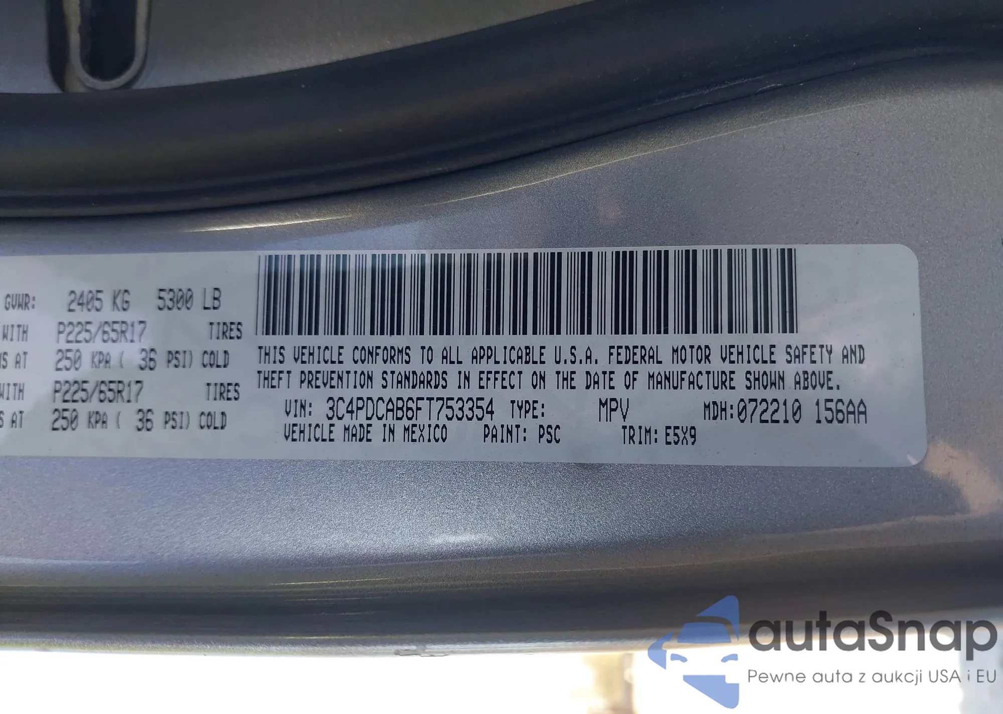 • VIN 3C4PDCAB6FT753354