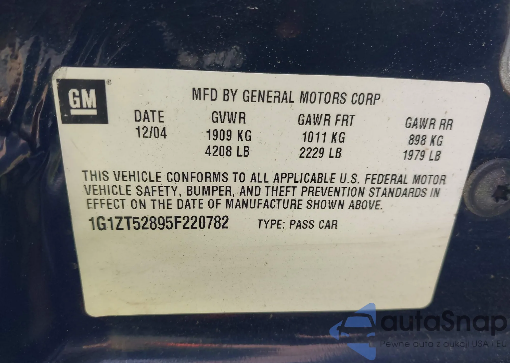 • VIN 1G1ZT52895F220782
