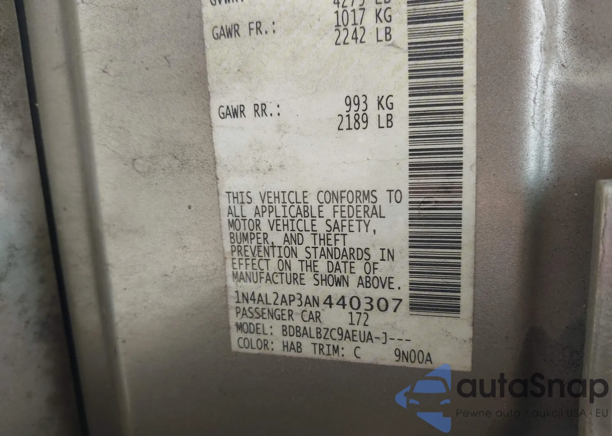LOT: 42119308 VIN: 1N4AL2AP3AN440307