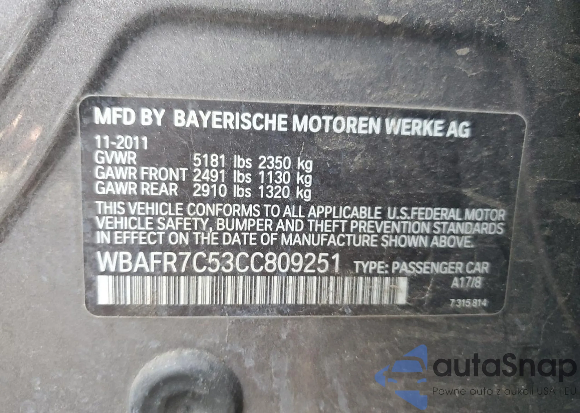 • VIN WBAFR7C53CC809251