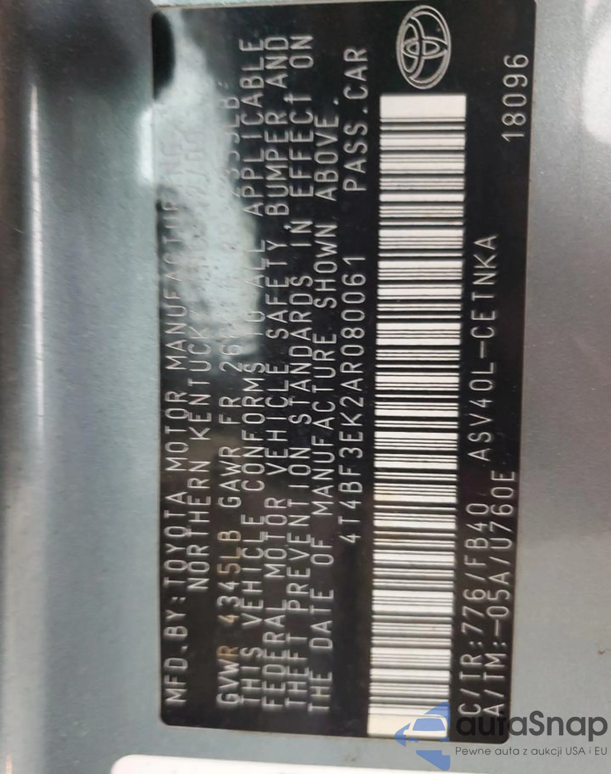 • VIN 4T4BF3EK2AR080061