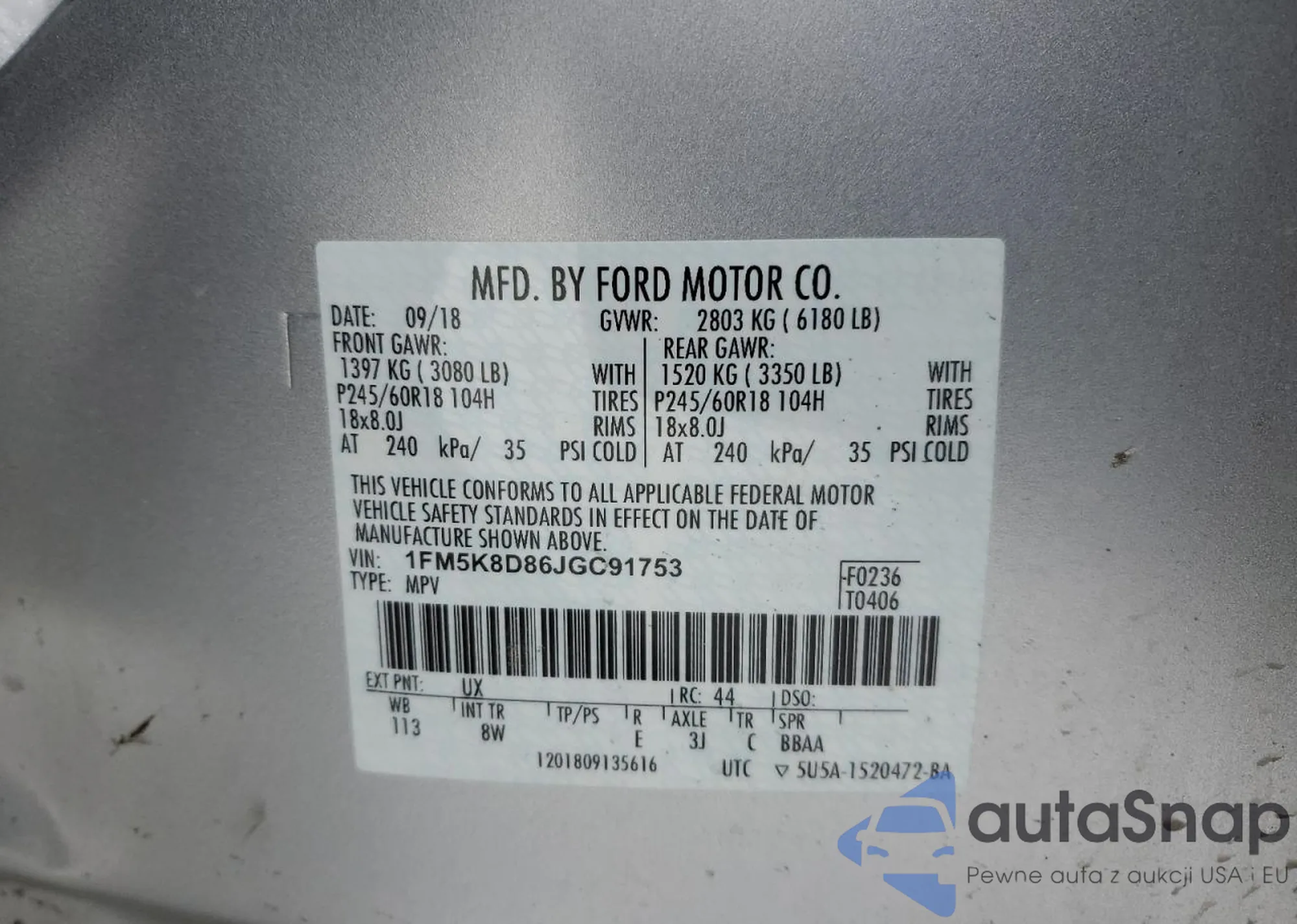 • VIN 1FM5K8D86JGC91753