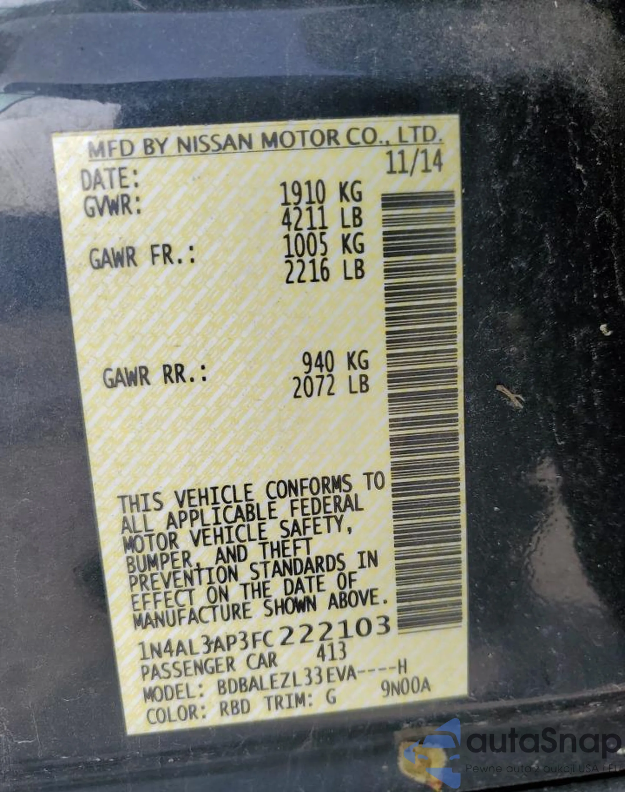 LOT: 54698985 VIN: 1N4AL3AP8FN404643