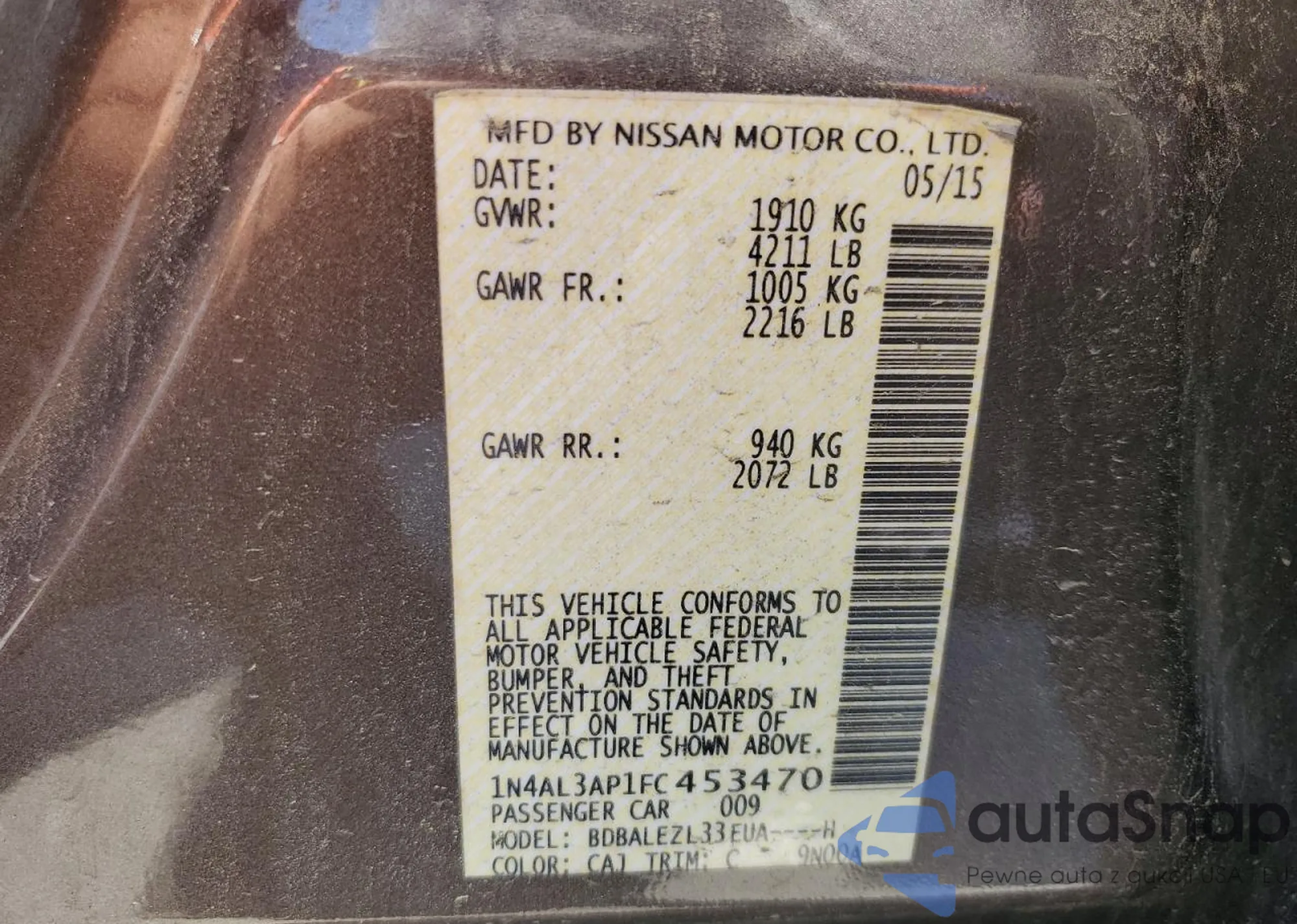 • VIN 1N4AL3AP1FC453470