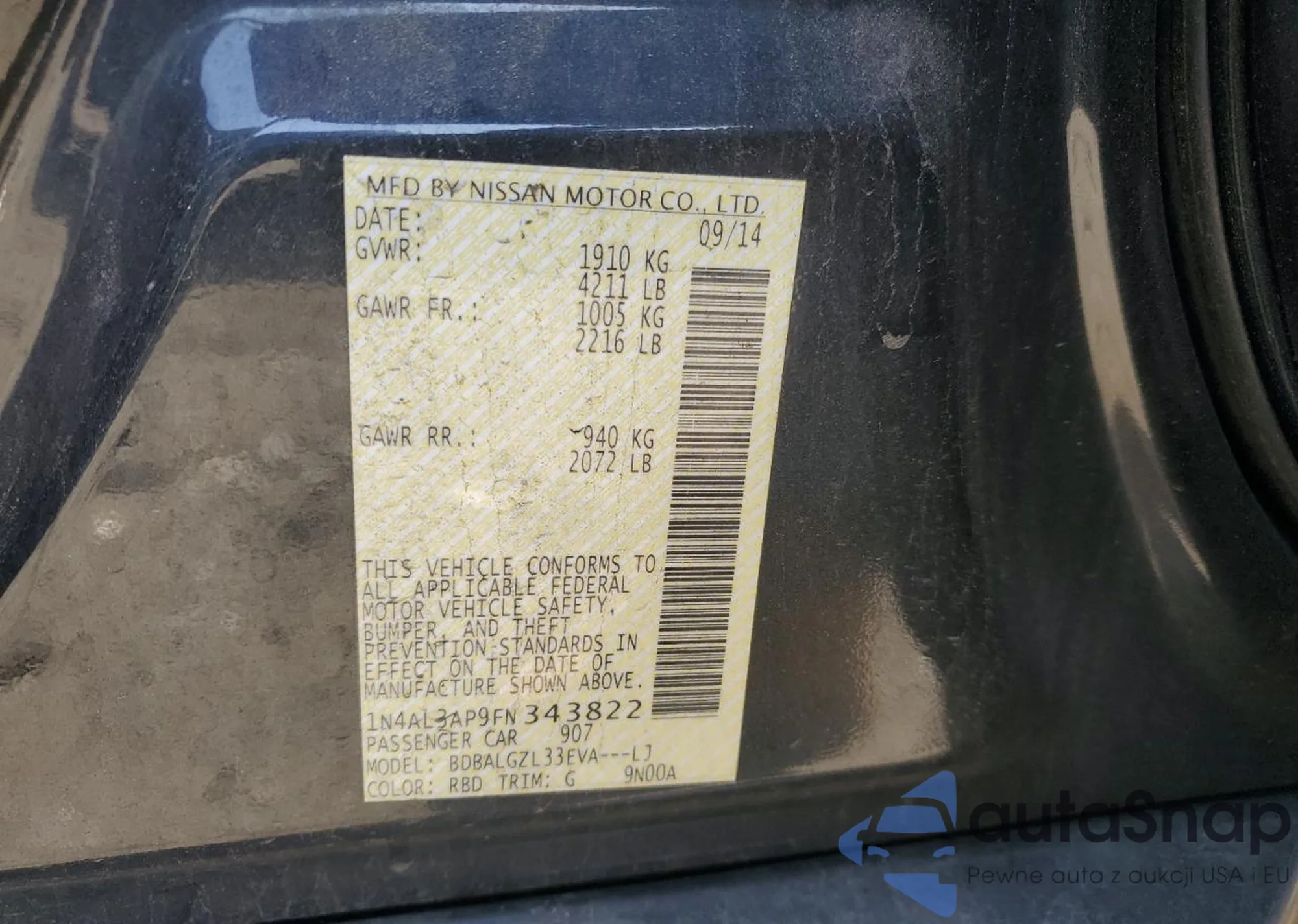 • VIN 1N4AL3AP9FN343822
