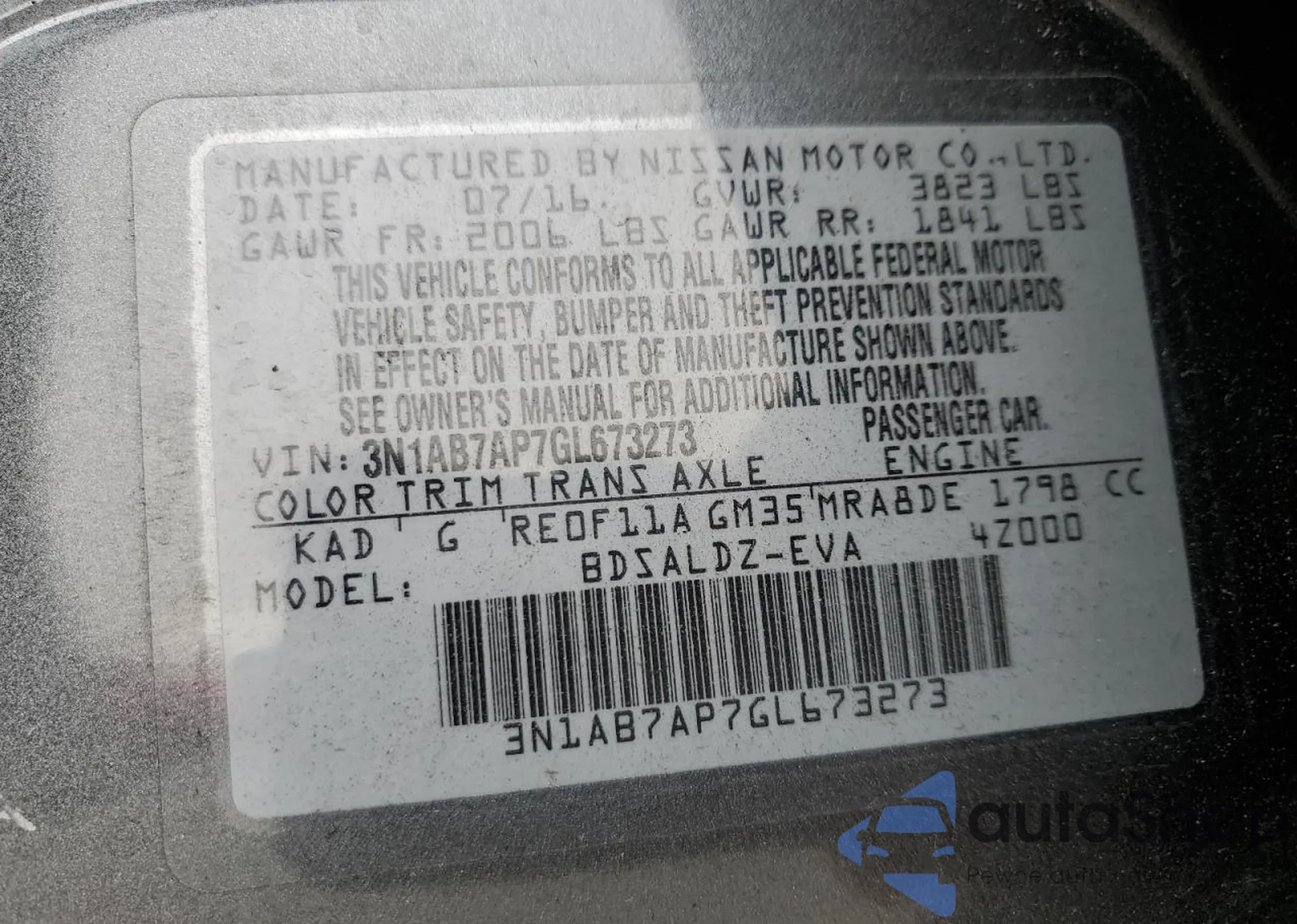 • VIN 3N1AB7AP7GL673273