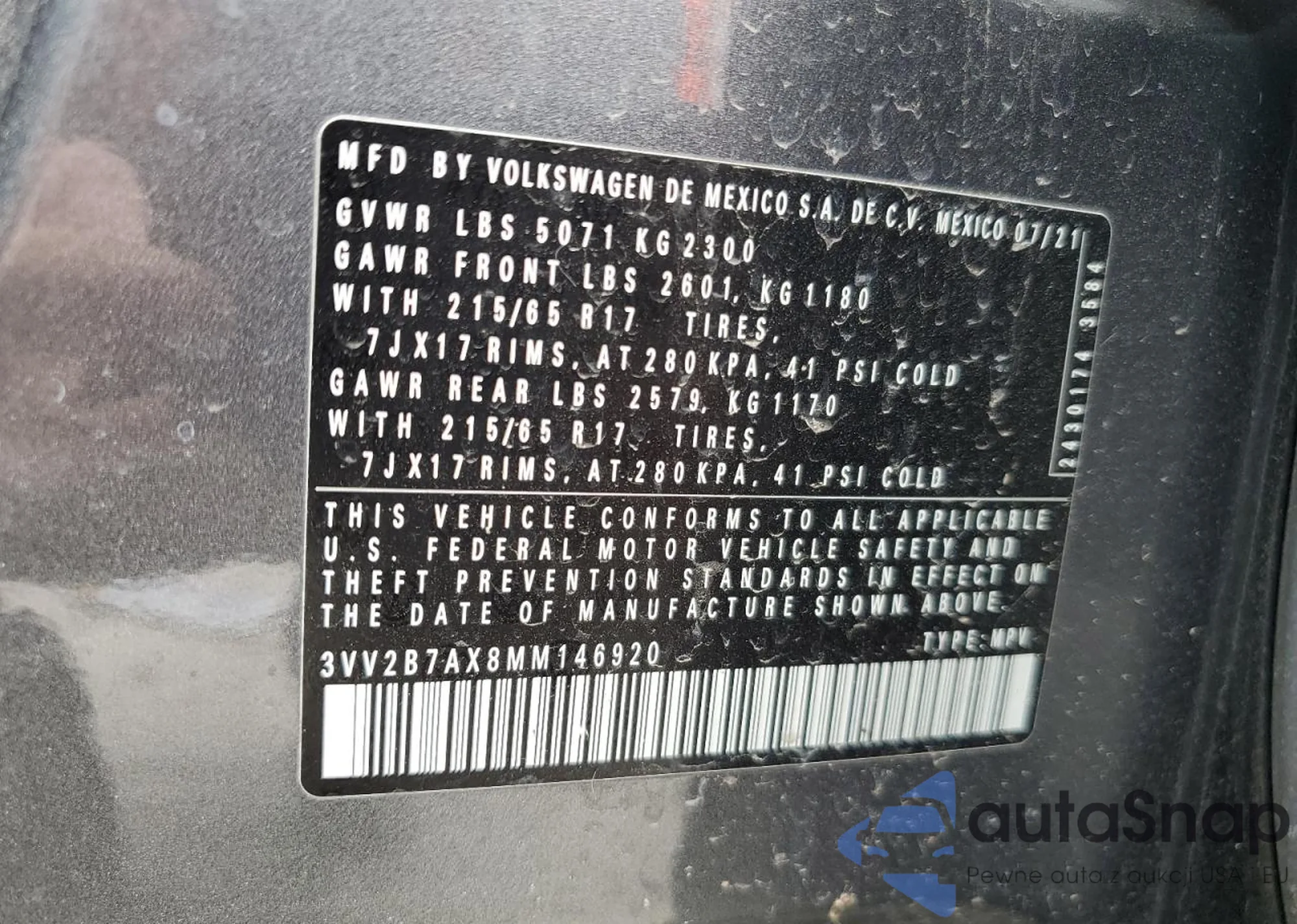 • VIN 5XYPG4A32JG374681