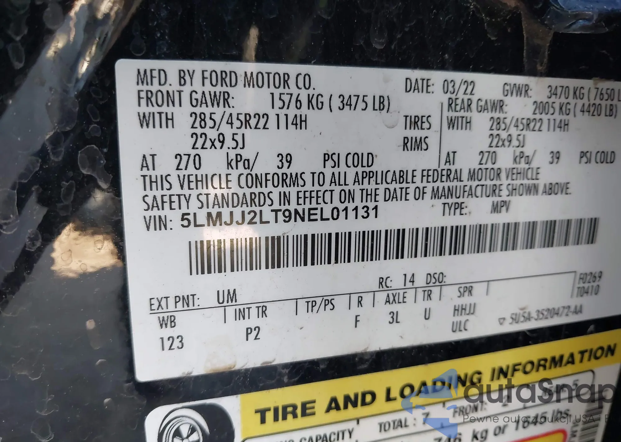 • VIN 5LMJJ2LT9NEL01131