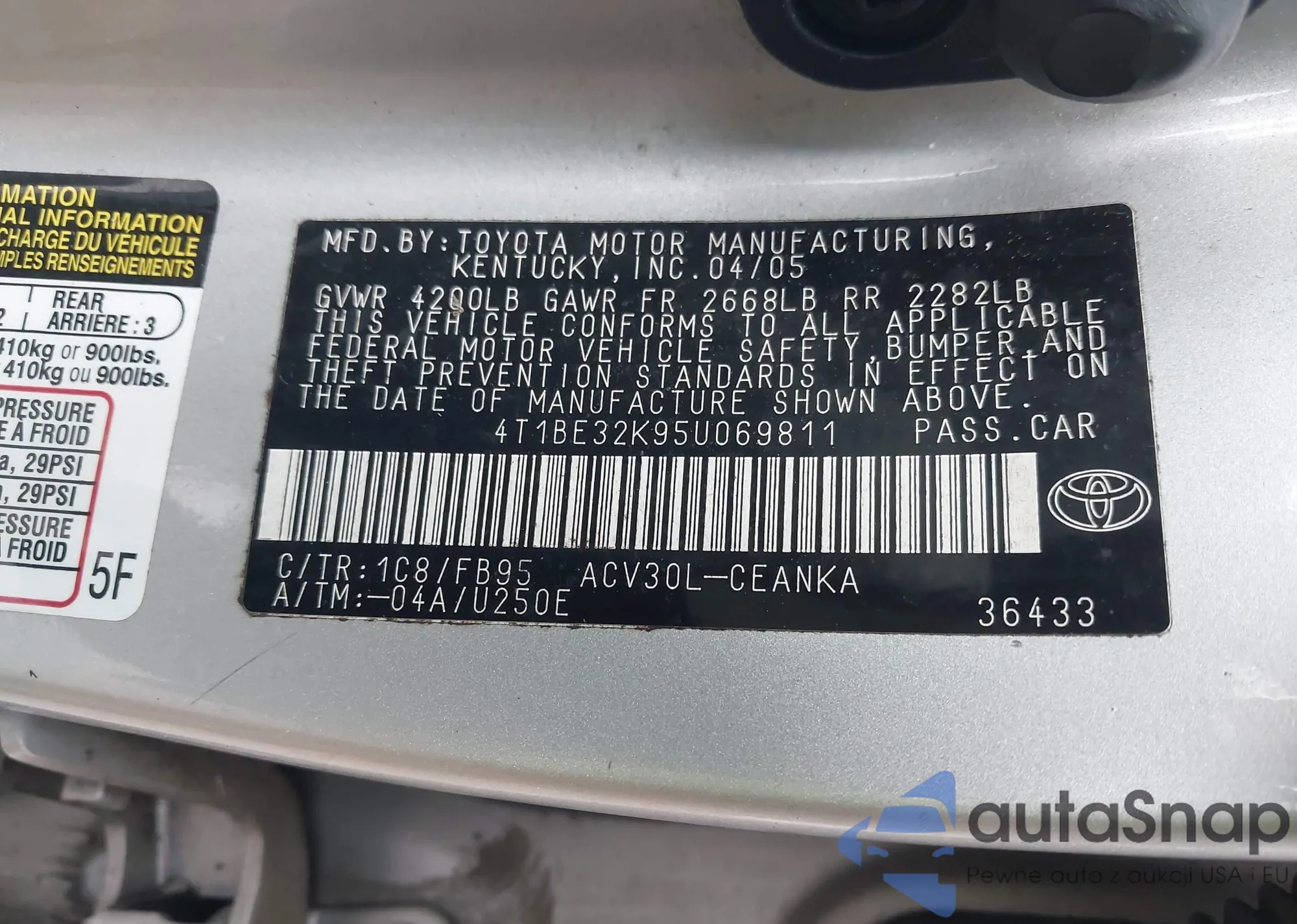 • VIN 4T1BE32K95U069811