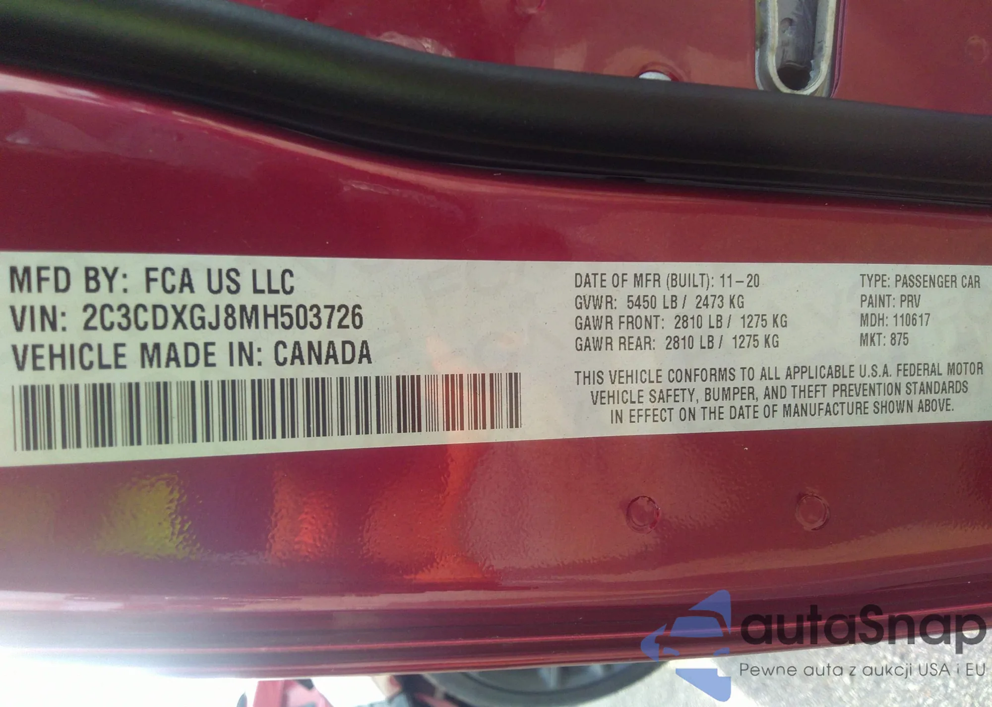 • VIN 2C3CDXGJ8MH503726