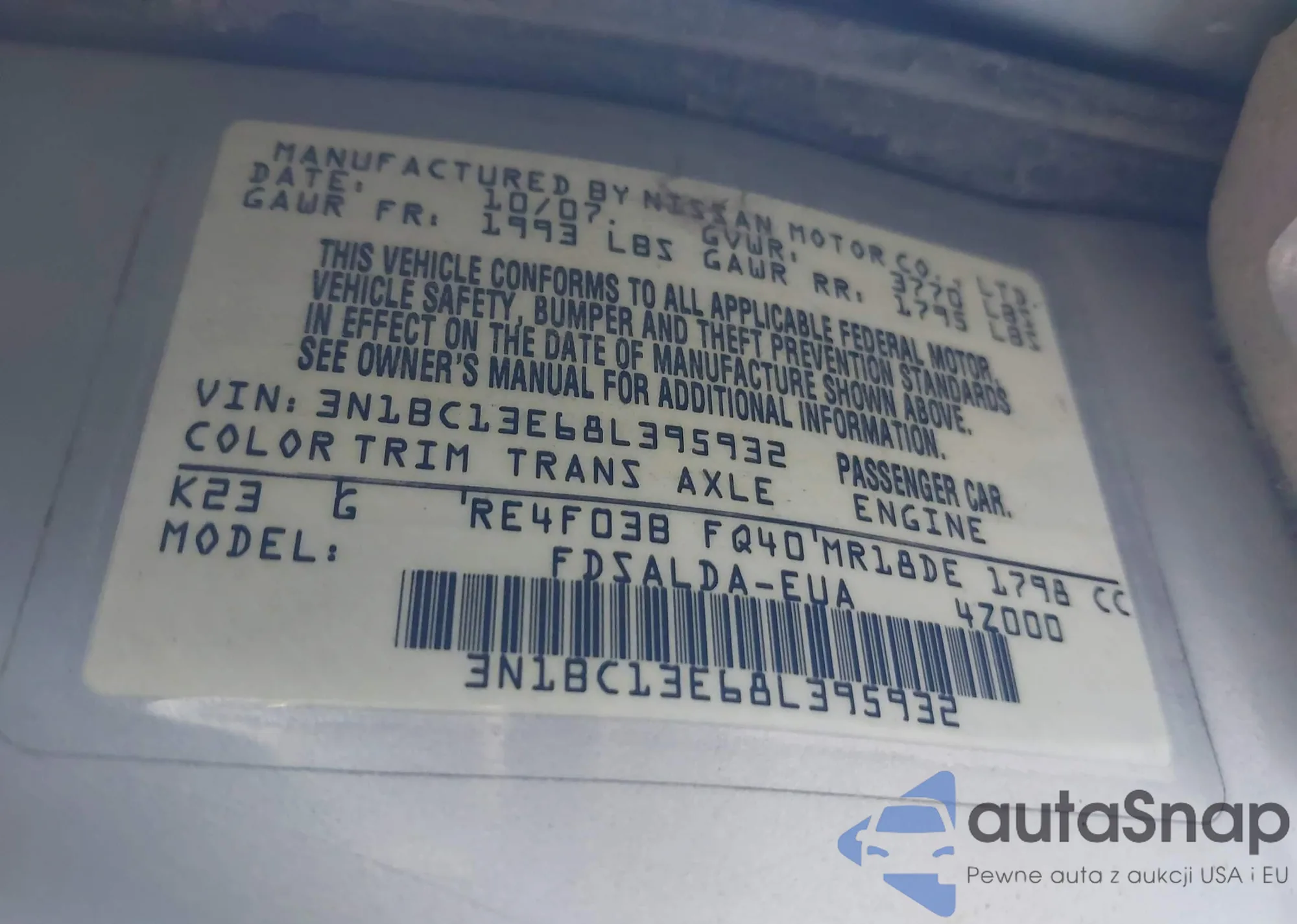 • VIN 3N1BC13E68L395932