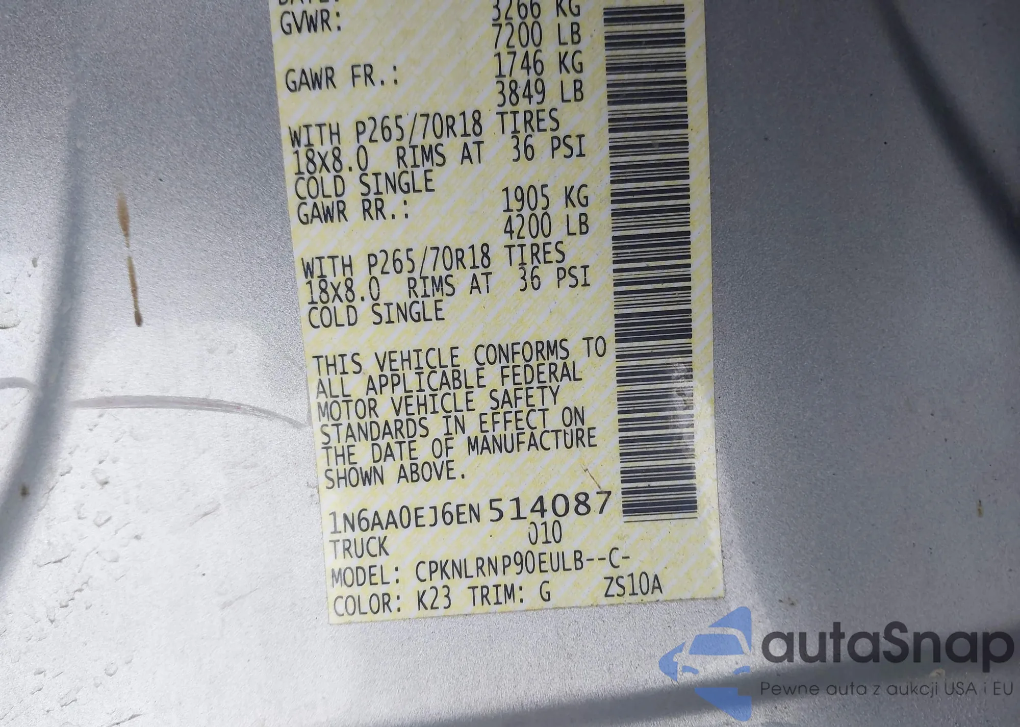 • VIN 1N6AA0EJ6EN514087