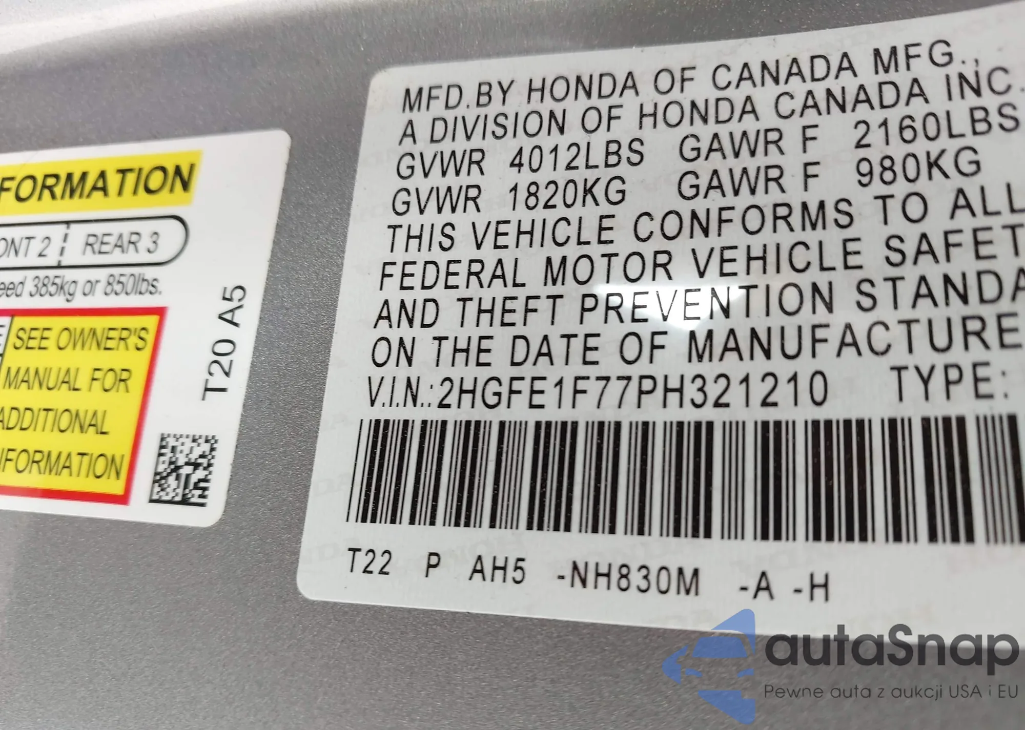 • VIN 2HGFE1F77PH321210