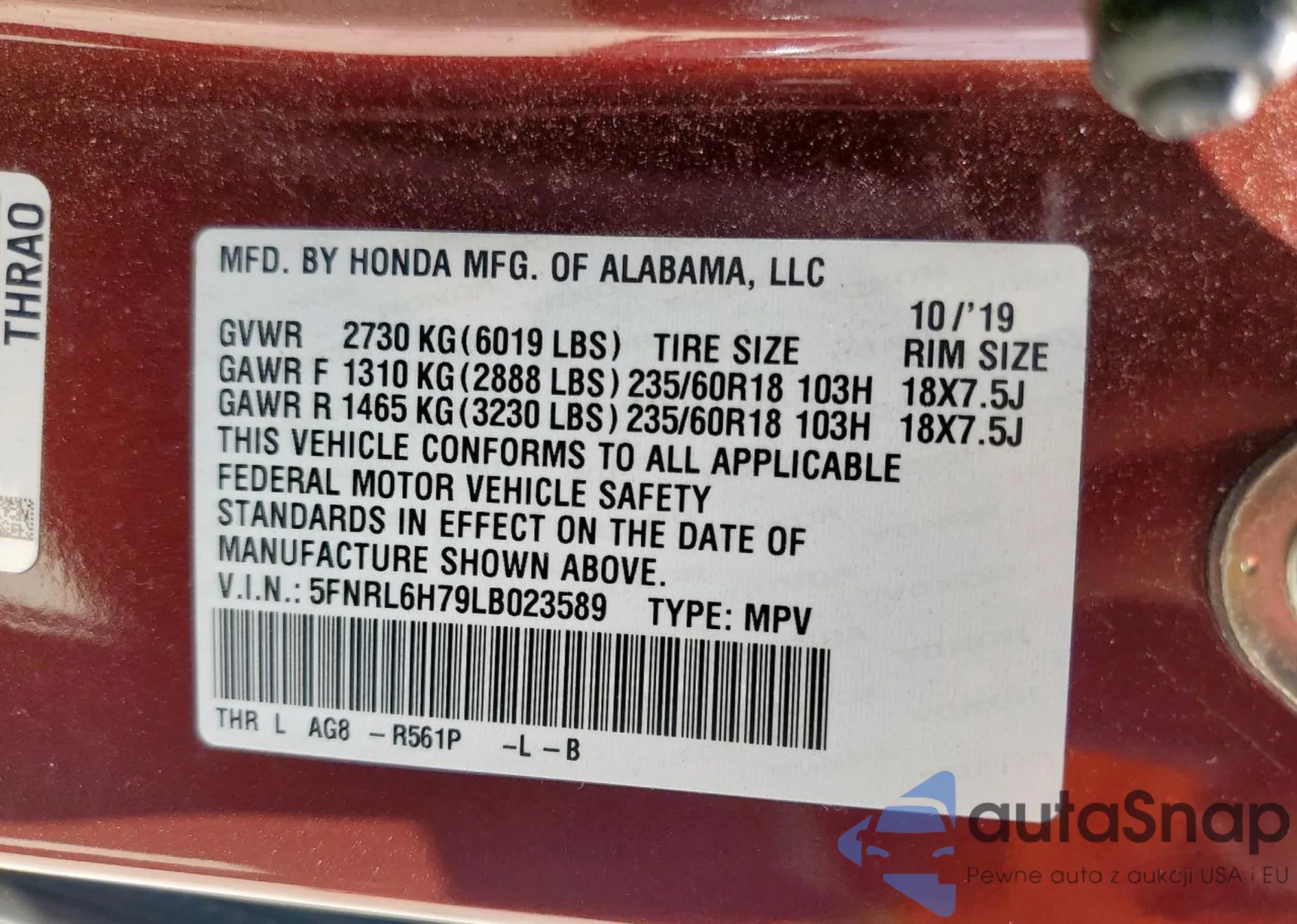 • VIN 5FNRL6H79LB023589