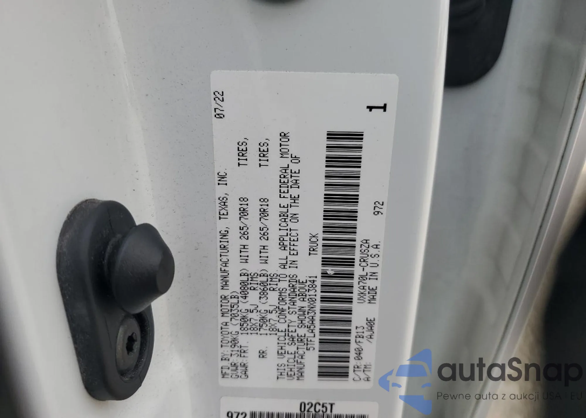 • VIN 5TFLA5AA3NX013841