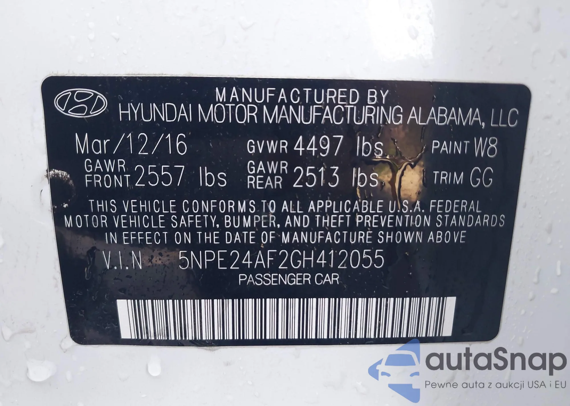 LOT: 42027241 VIN: 5NPE24AF2GH412055