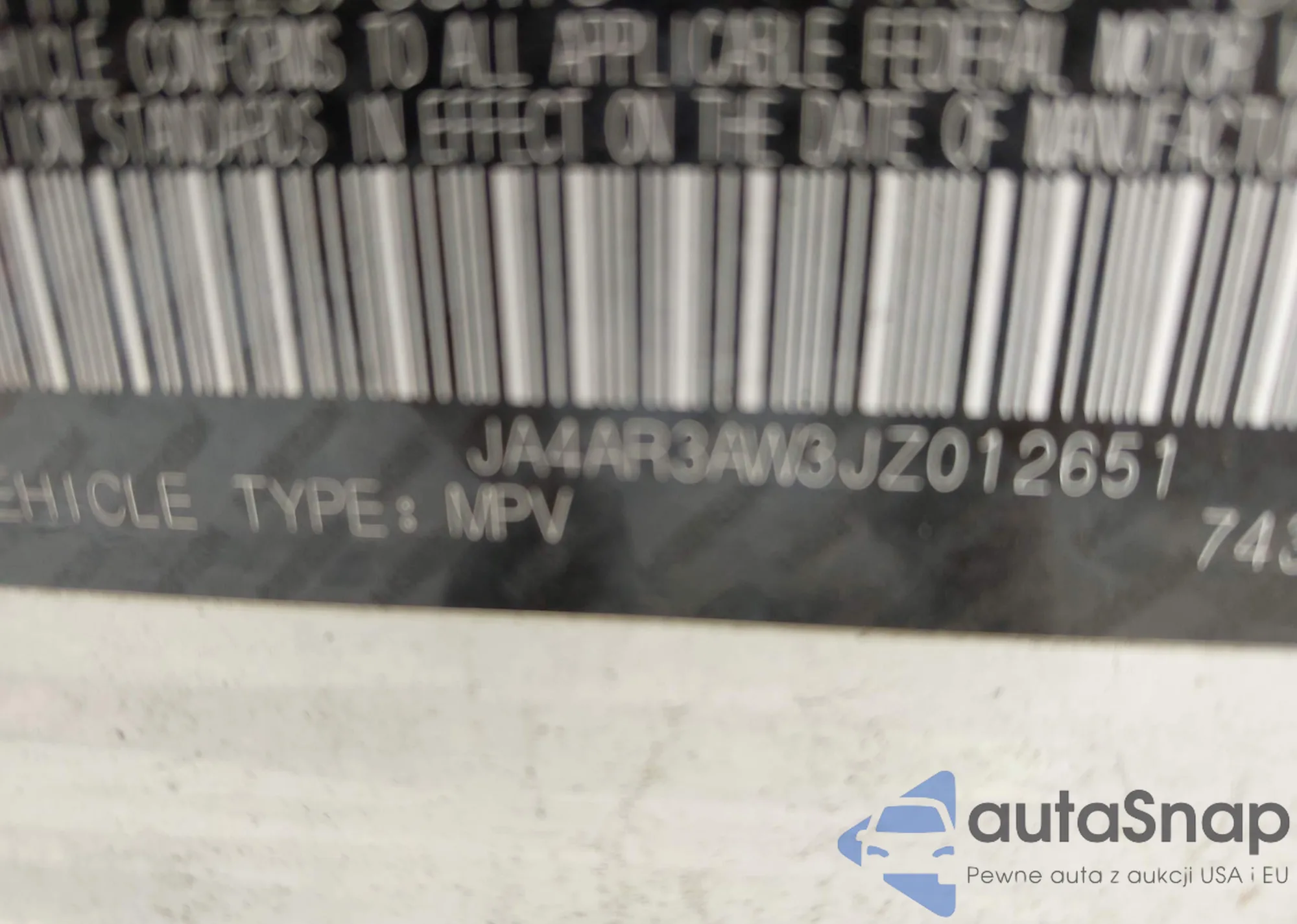 LOT: 42144829 VIN: JA4AR3AW3JZ012651