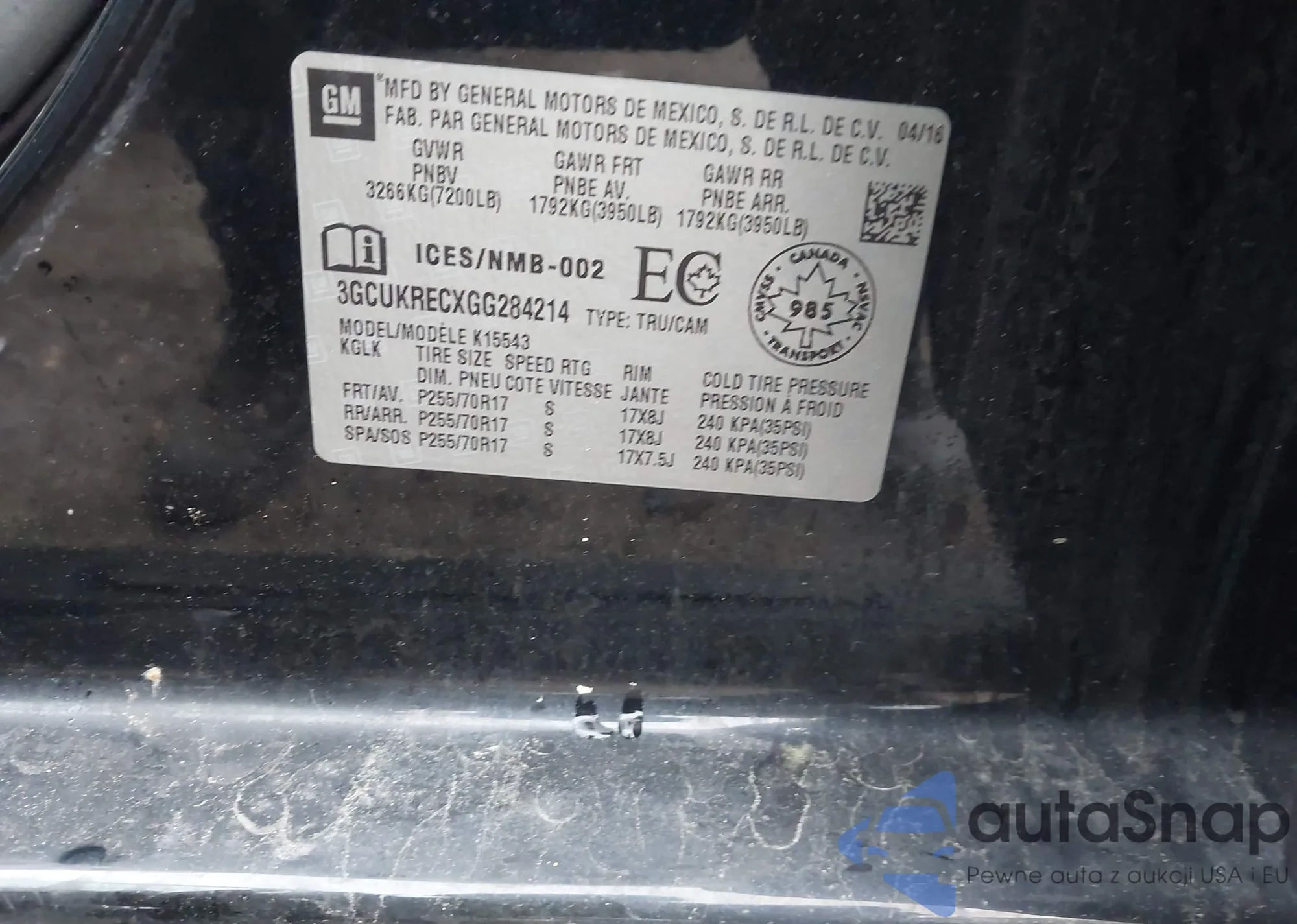 • VIN 3GCUKRECXGG284214