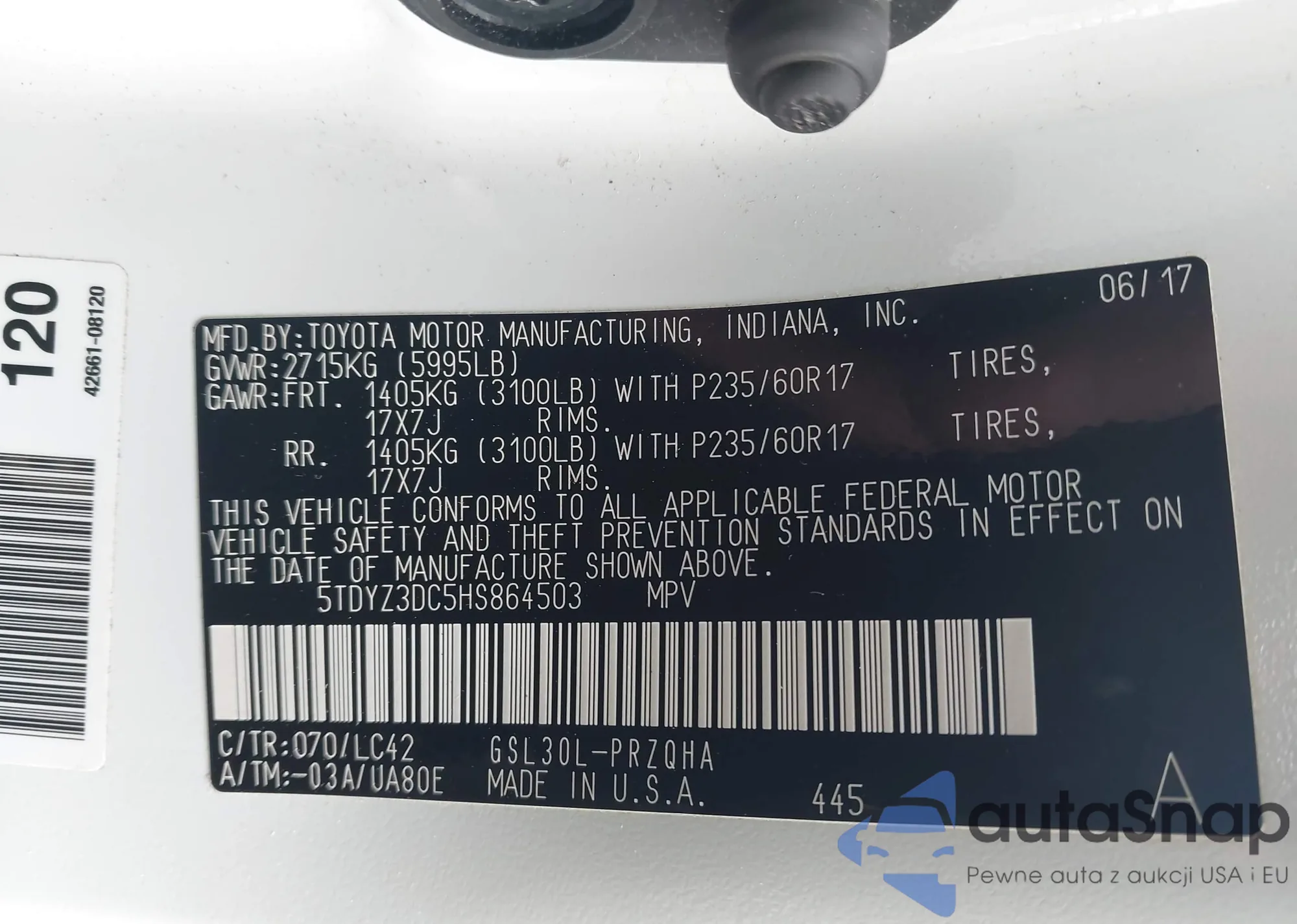 LOT: 42153233 VIN: 3TMJU62N78M051847