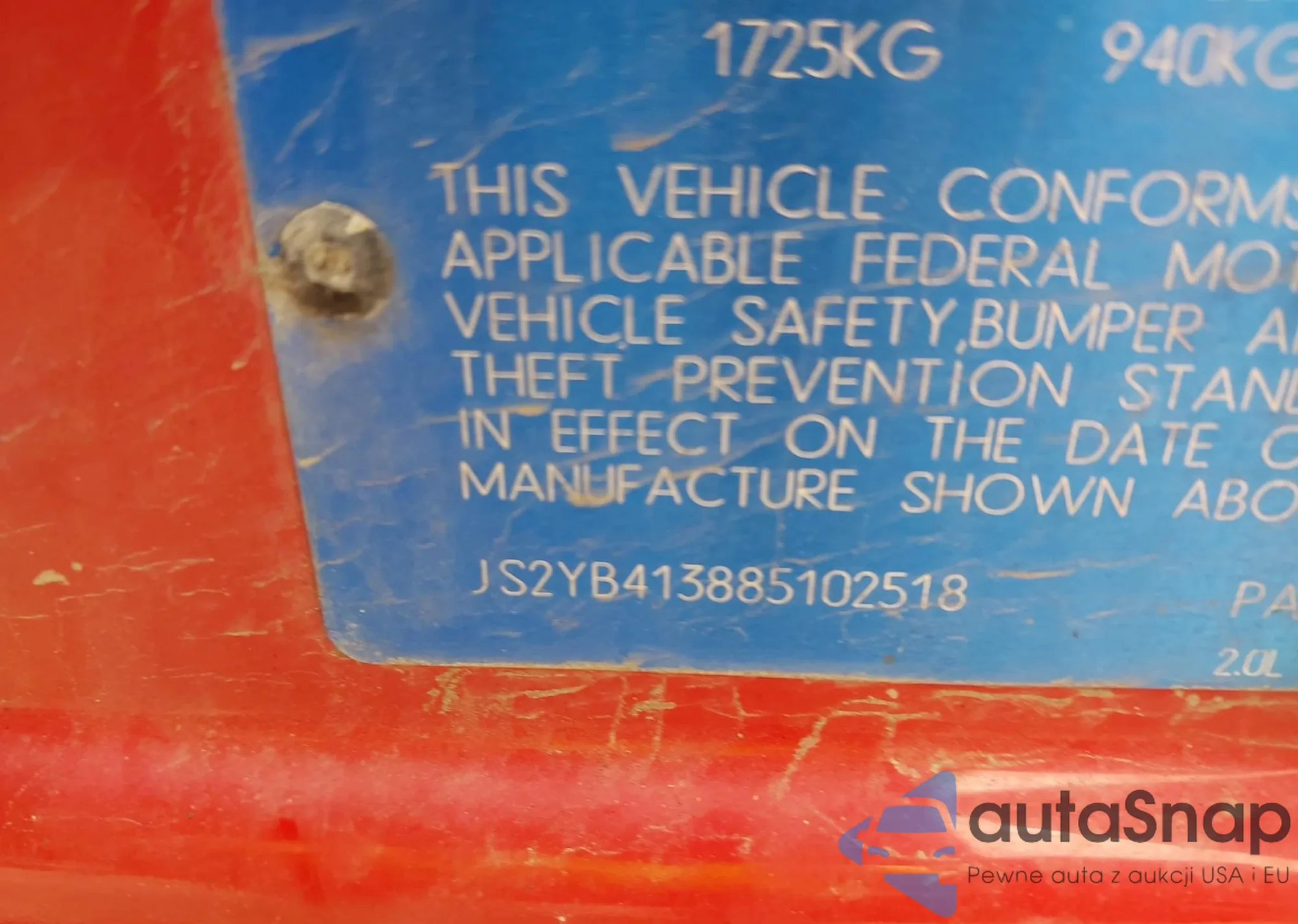 • VIN JS2YB413885102518