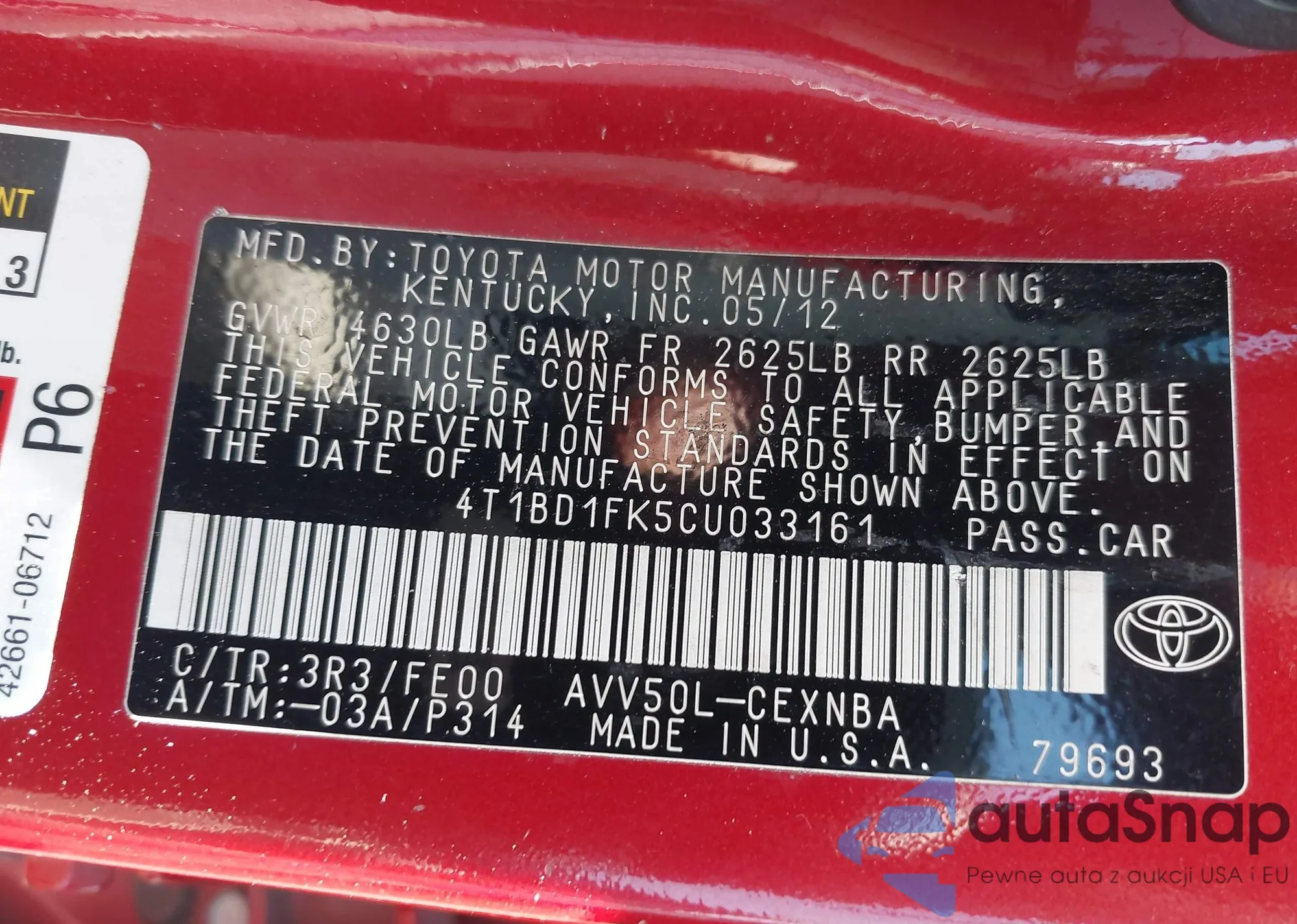 LOT: 42155027 VIN: JTJBT20XX80160016