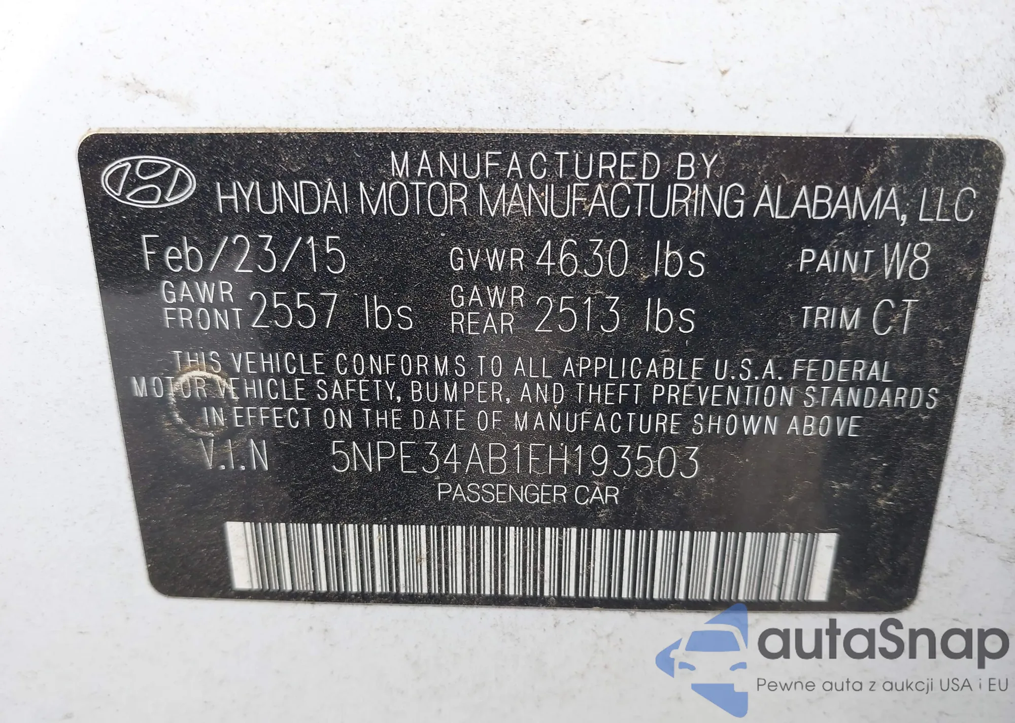 • VIN 5NPE34AB1FH193503