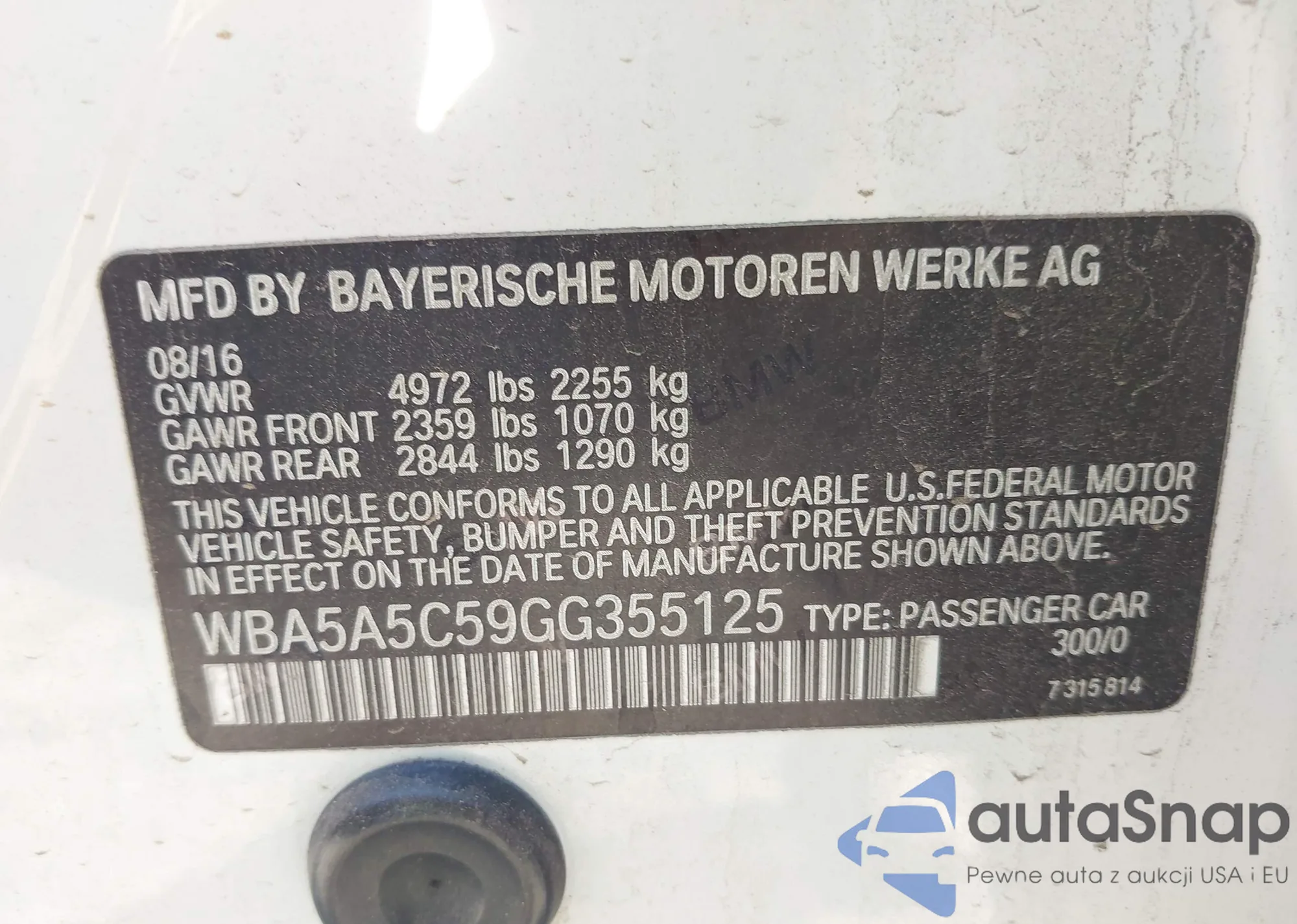 LOT: 42051403 VIN: WBA5A5C59GG355125