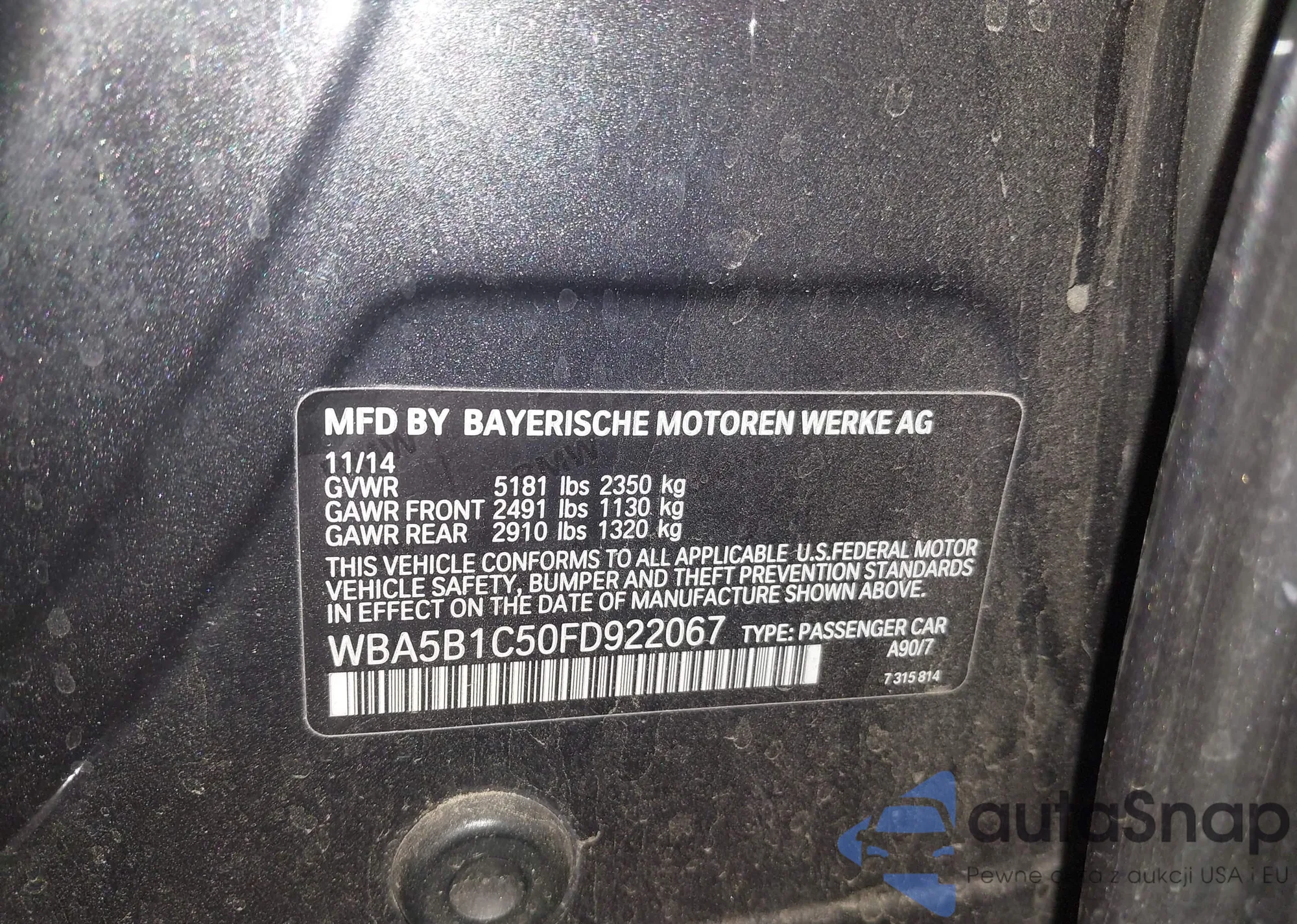 • VIN WBA5B1C50FD922067