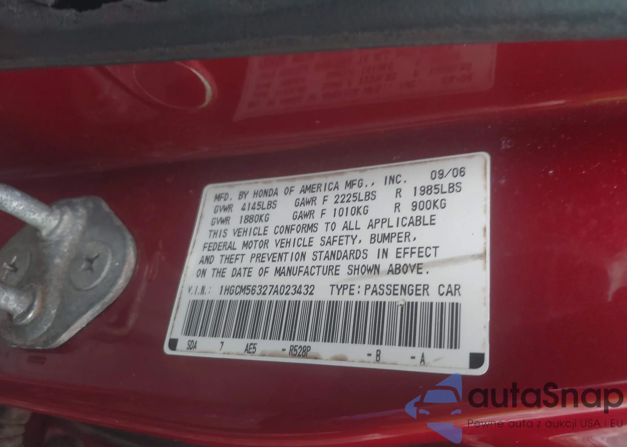 LOT: 42125283 VIN: 1HGCM56327A023432