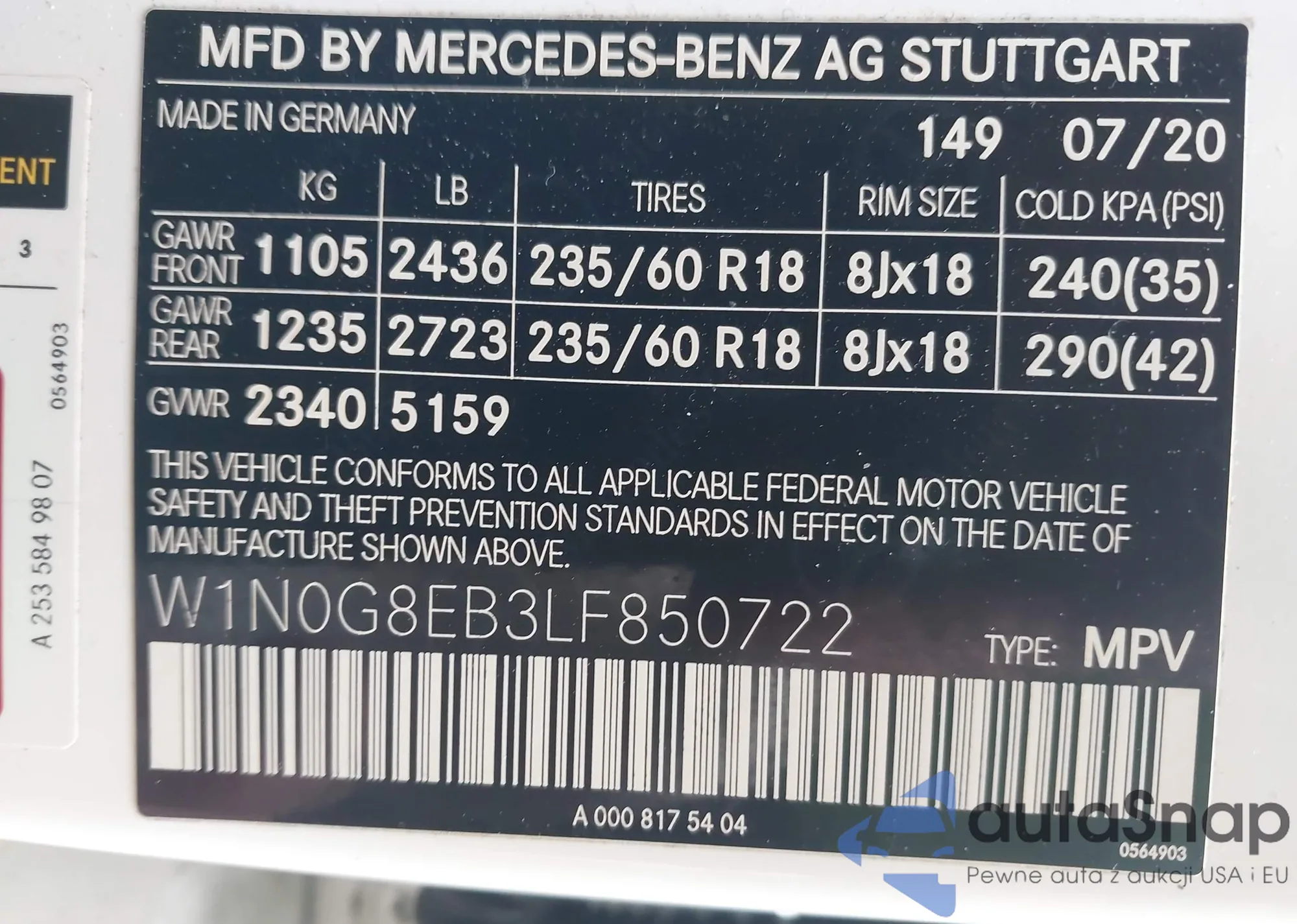 • VIN W1N0G8EB3LF850722
