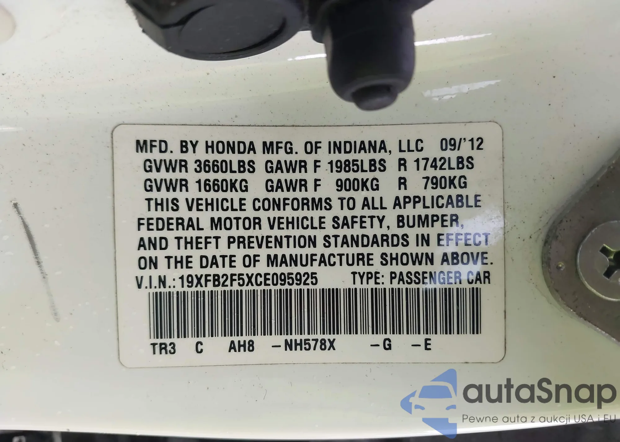 LOT: 42009224 VIN: 19XFB2F81DE254181