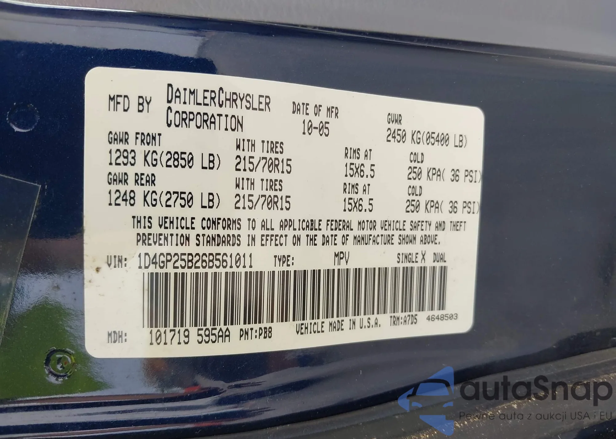 • VIN 1D4GP25B26B561011