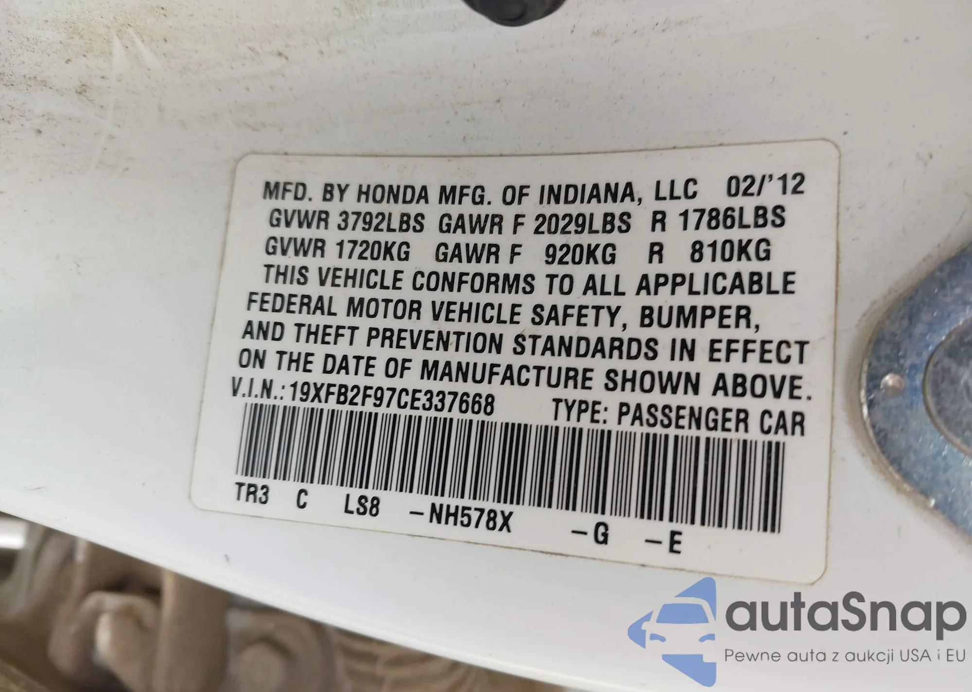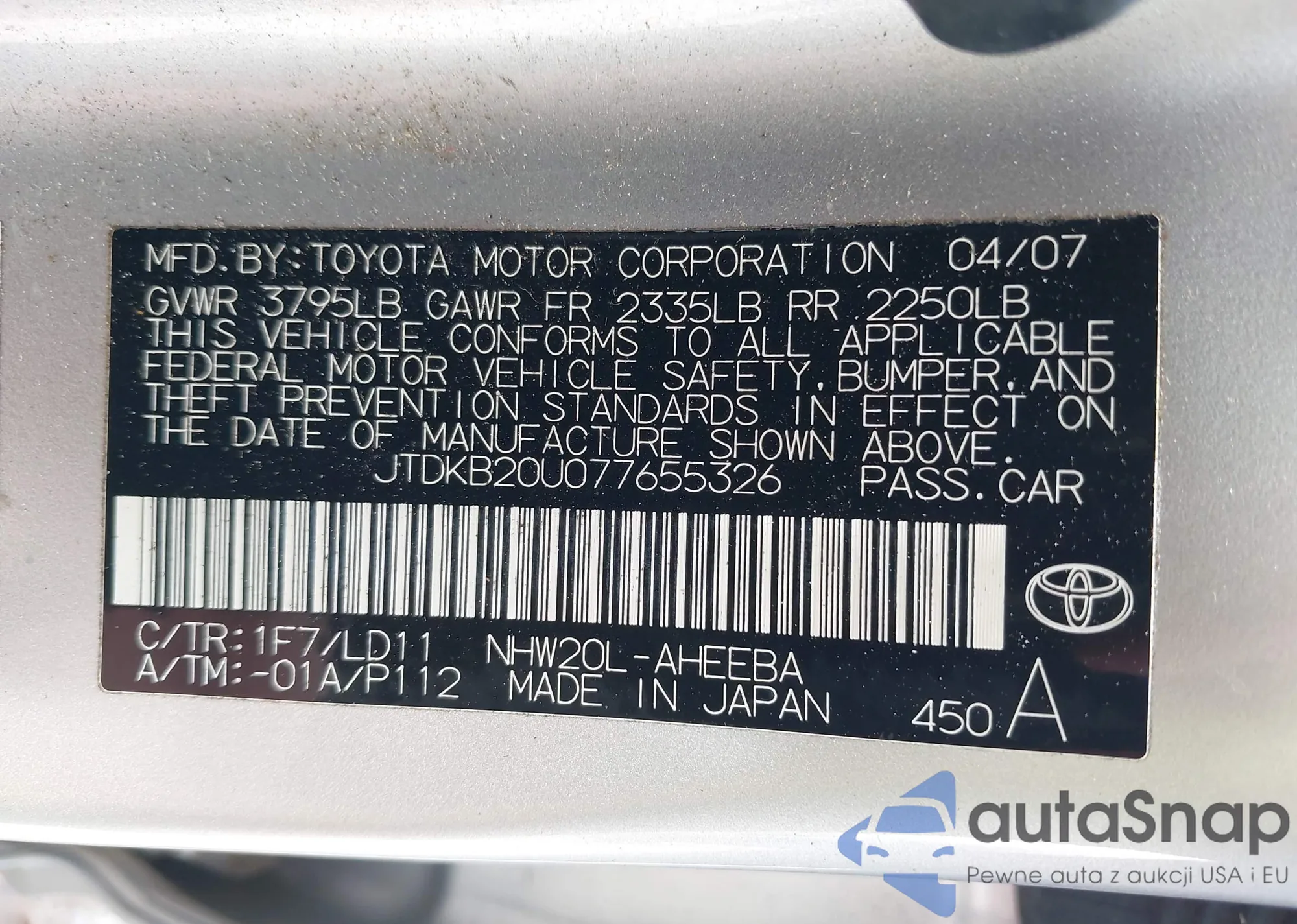 LOT: 42256711 VIN: JTDKB20U077655326