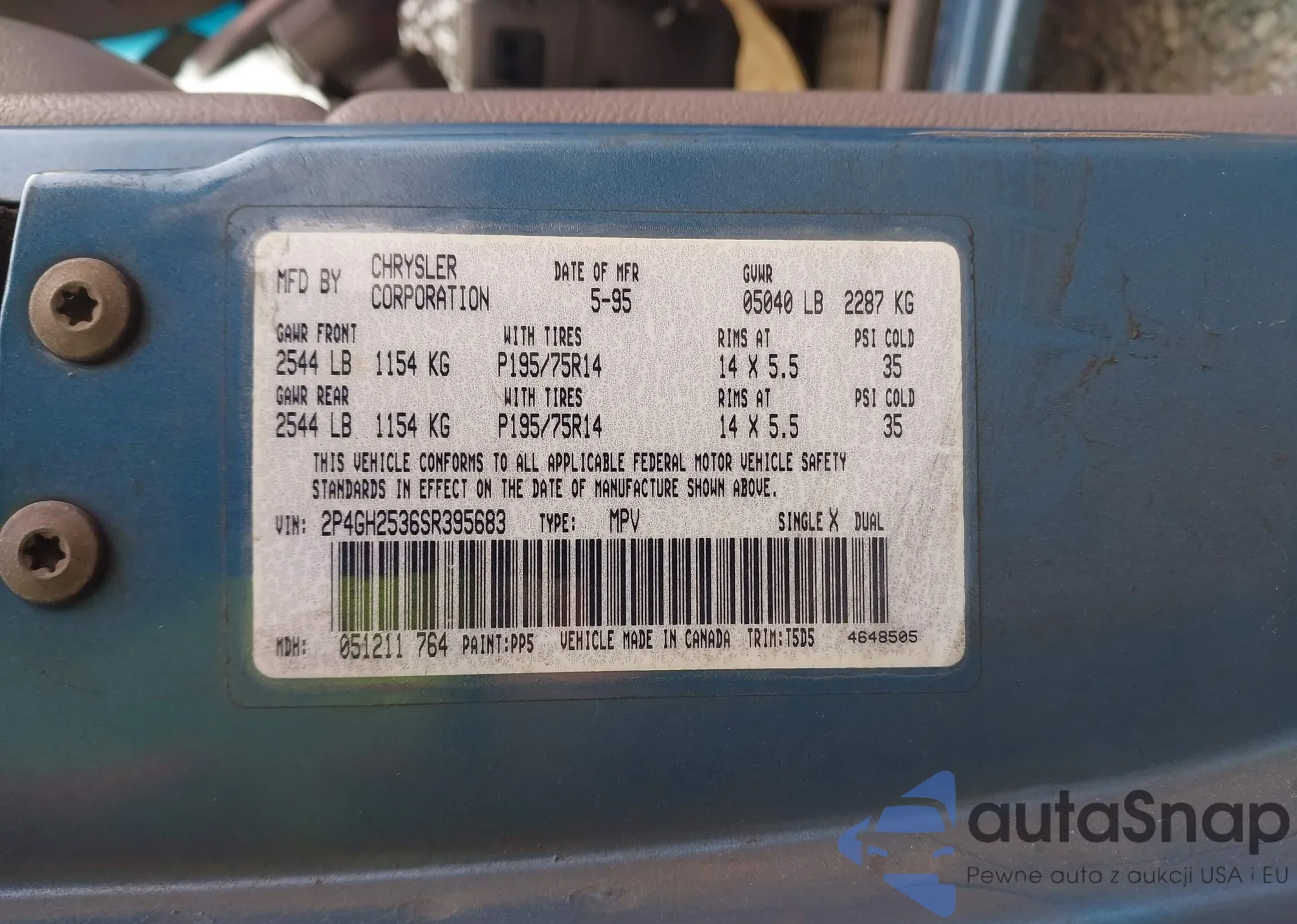 • VIN 2P4GH2536SR395683