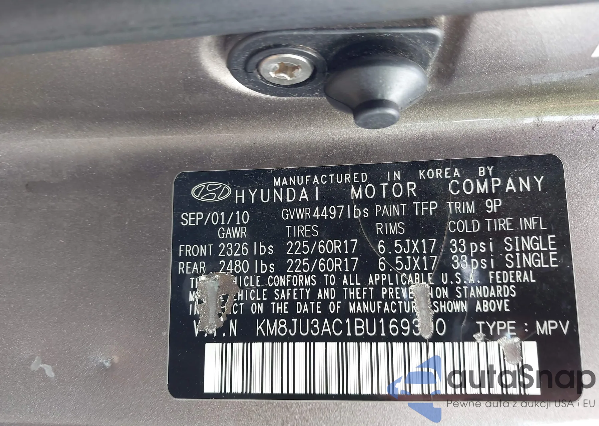 LOT: 42237073 VIN: KM8JU3AC1BU169390