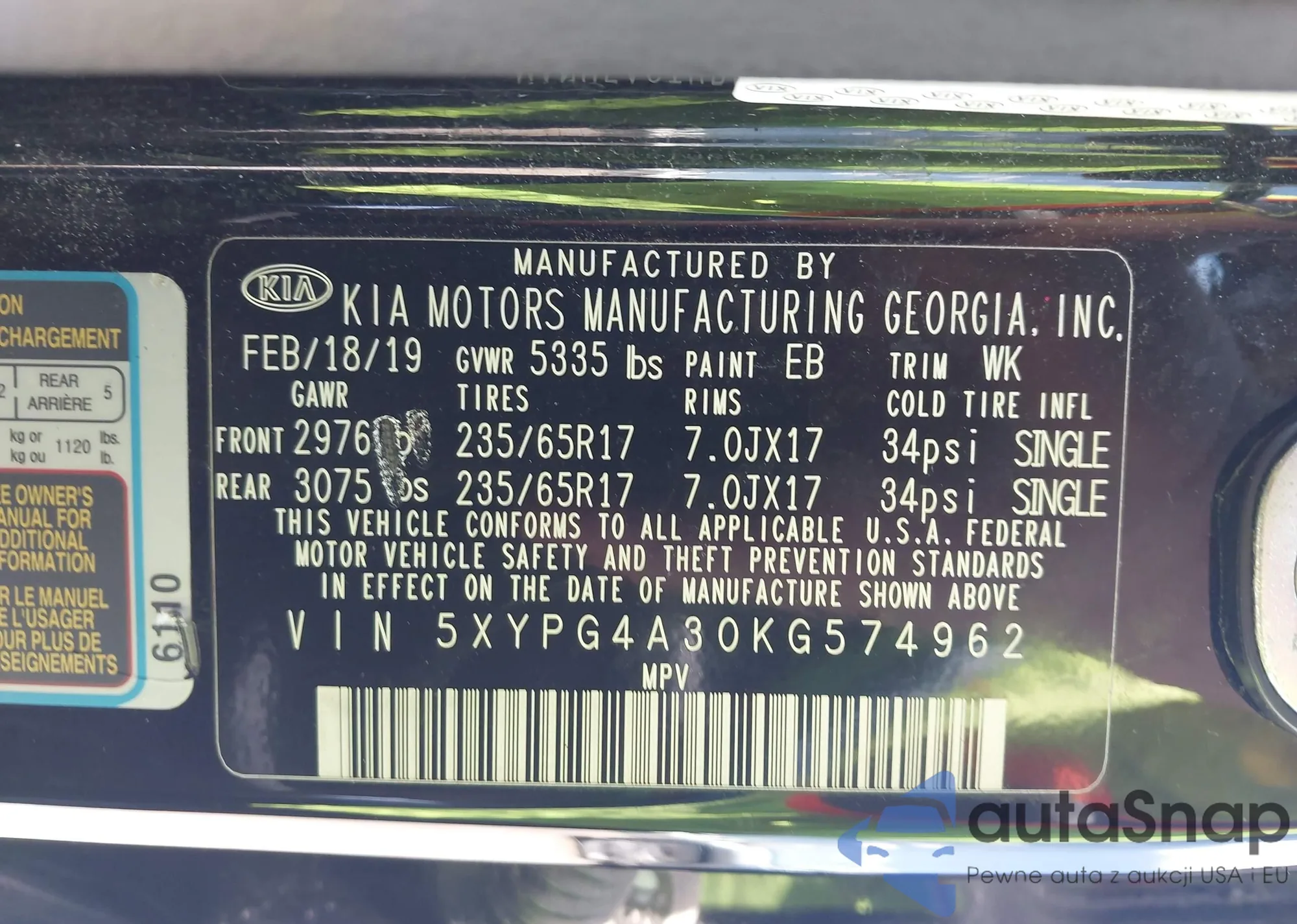 • VIN 5XYPG4A30KG574962