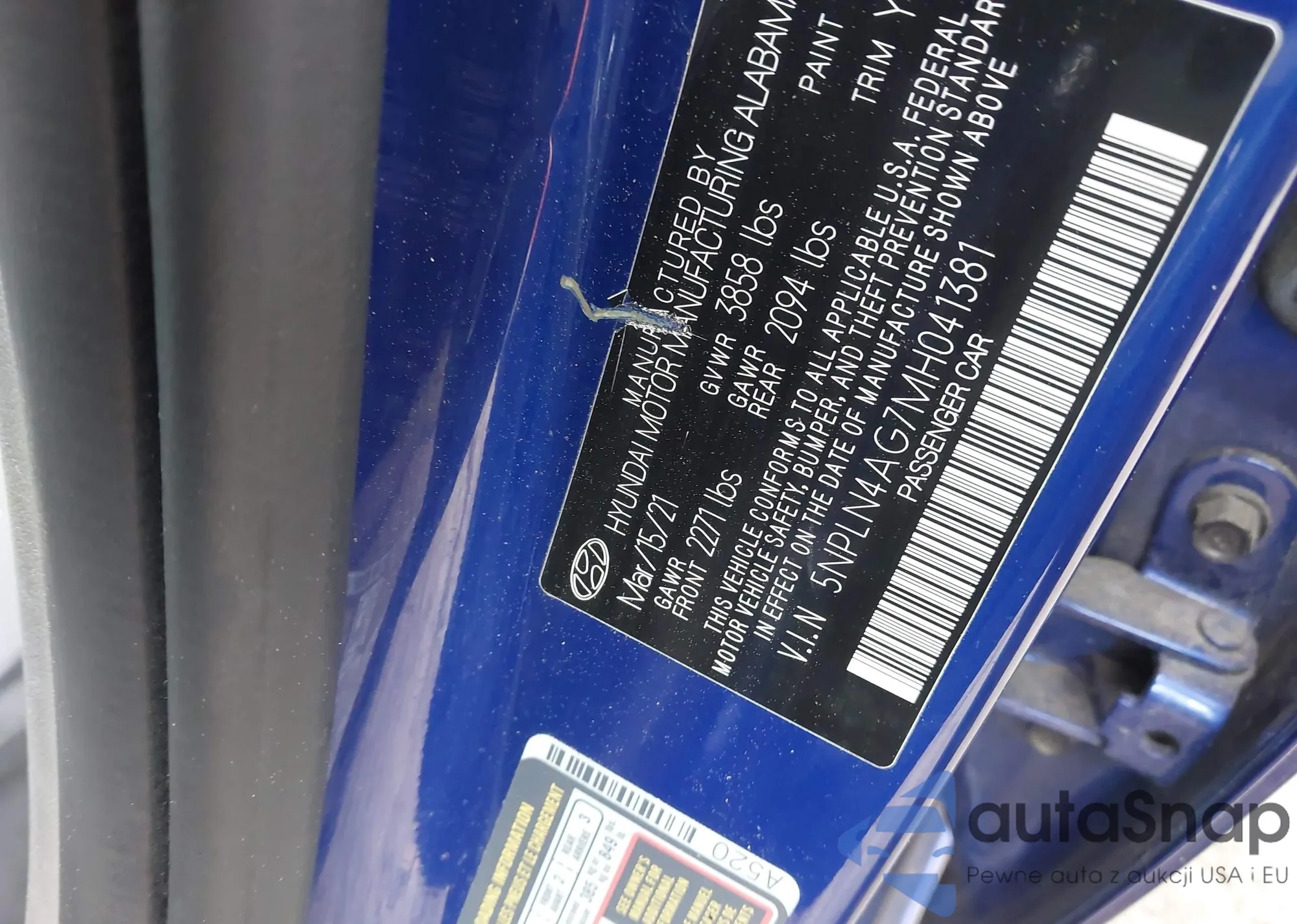 LOT: 41935000 VIN: KM8J2CA41KU878870