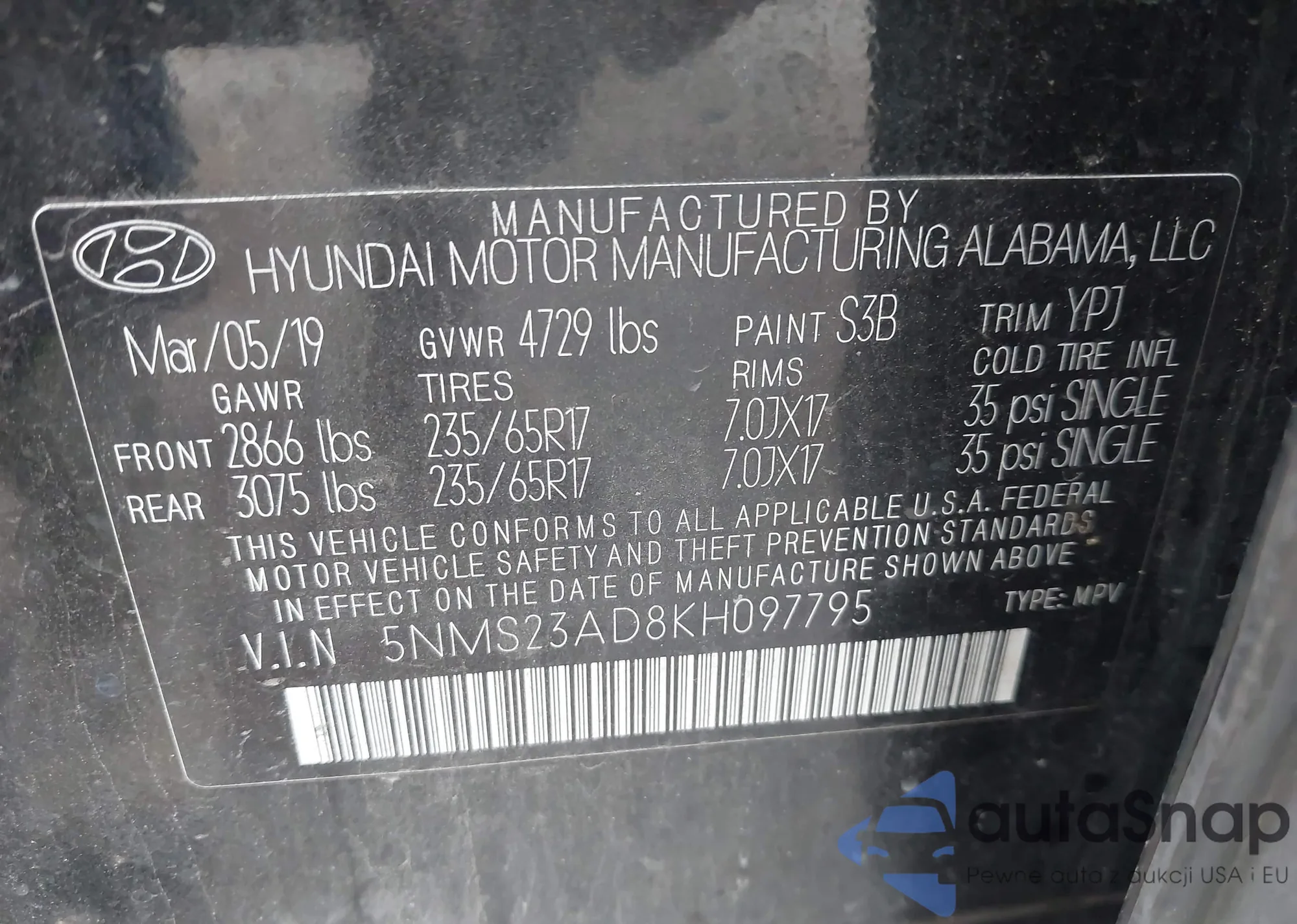 • VIN 5NMS23AD8KH097795
