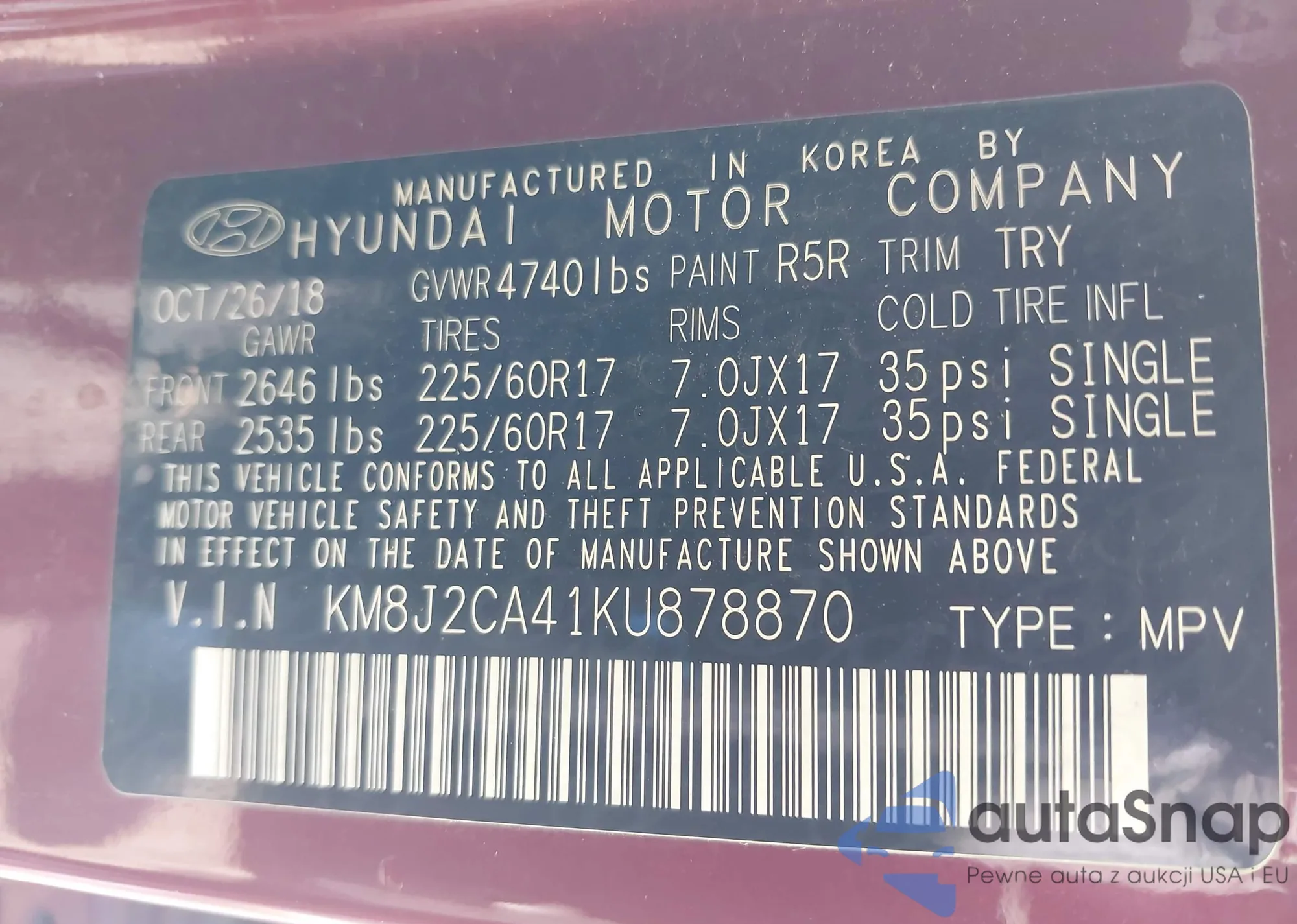 • VIN KM8J2CA41KU878870