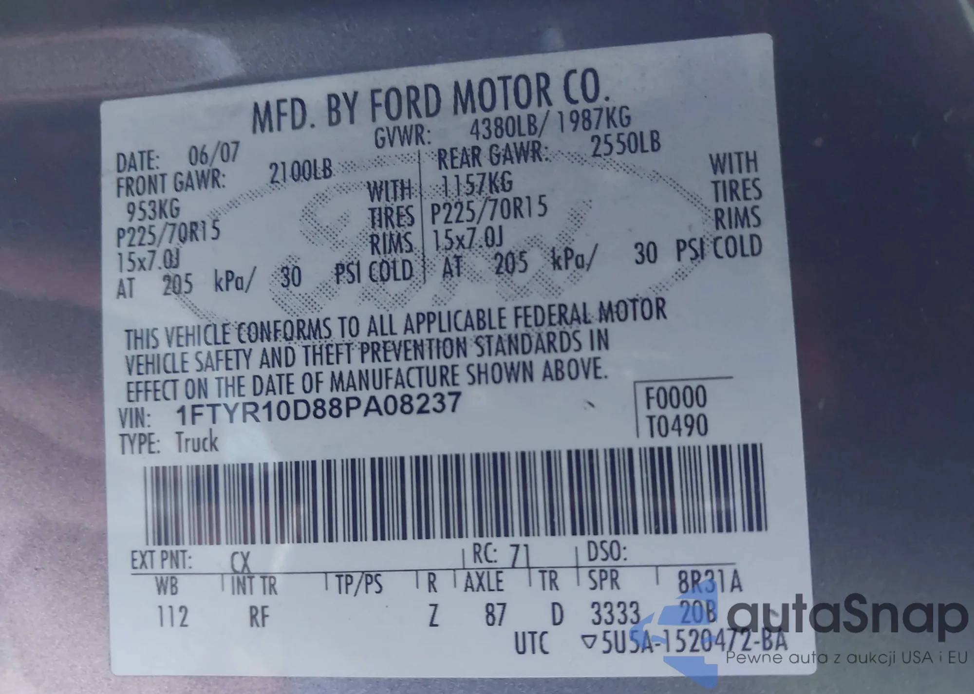 • VIN 5FPYK3F19MB017134