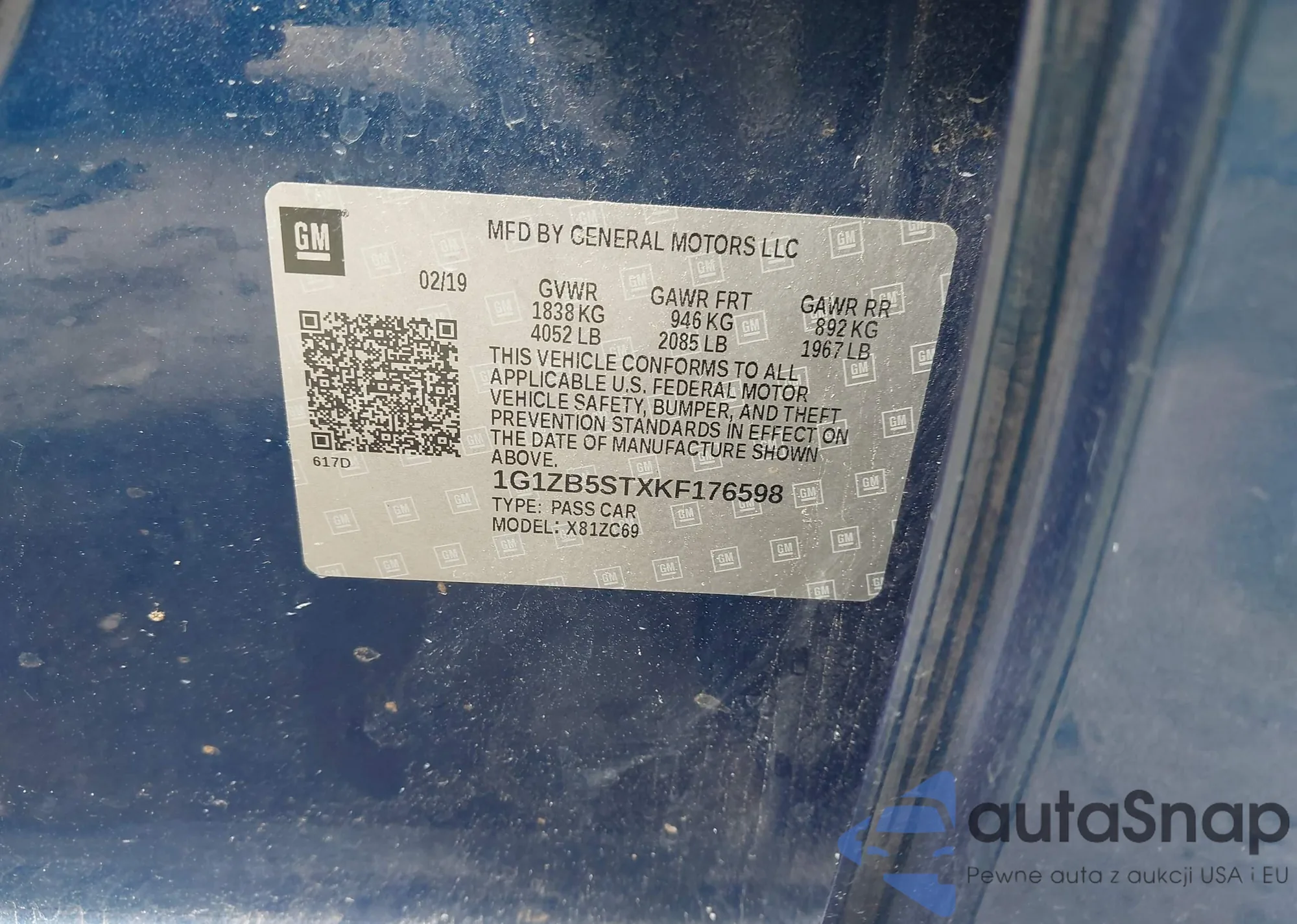 LOT: 41865059 VIN: 1G1ZB5STXKF176598