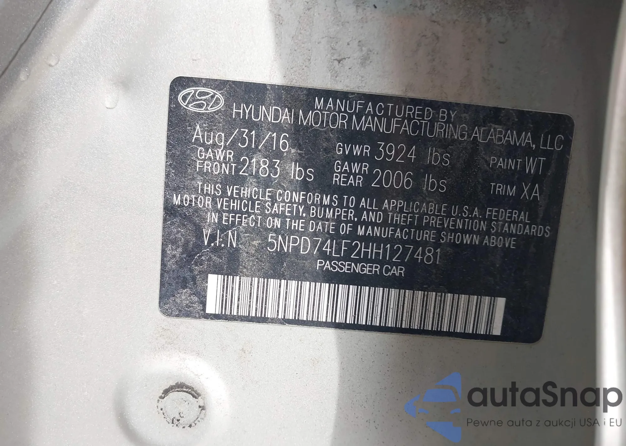 LOT: 41918433 VIN: 5NPD74LF2HH127481