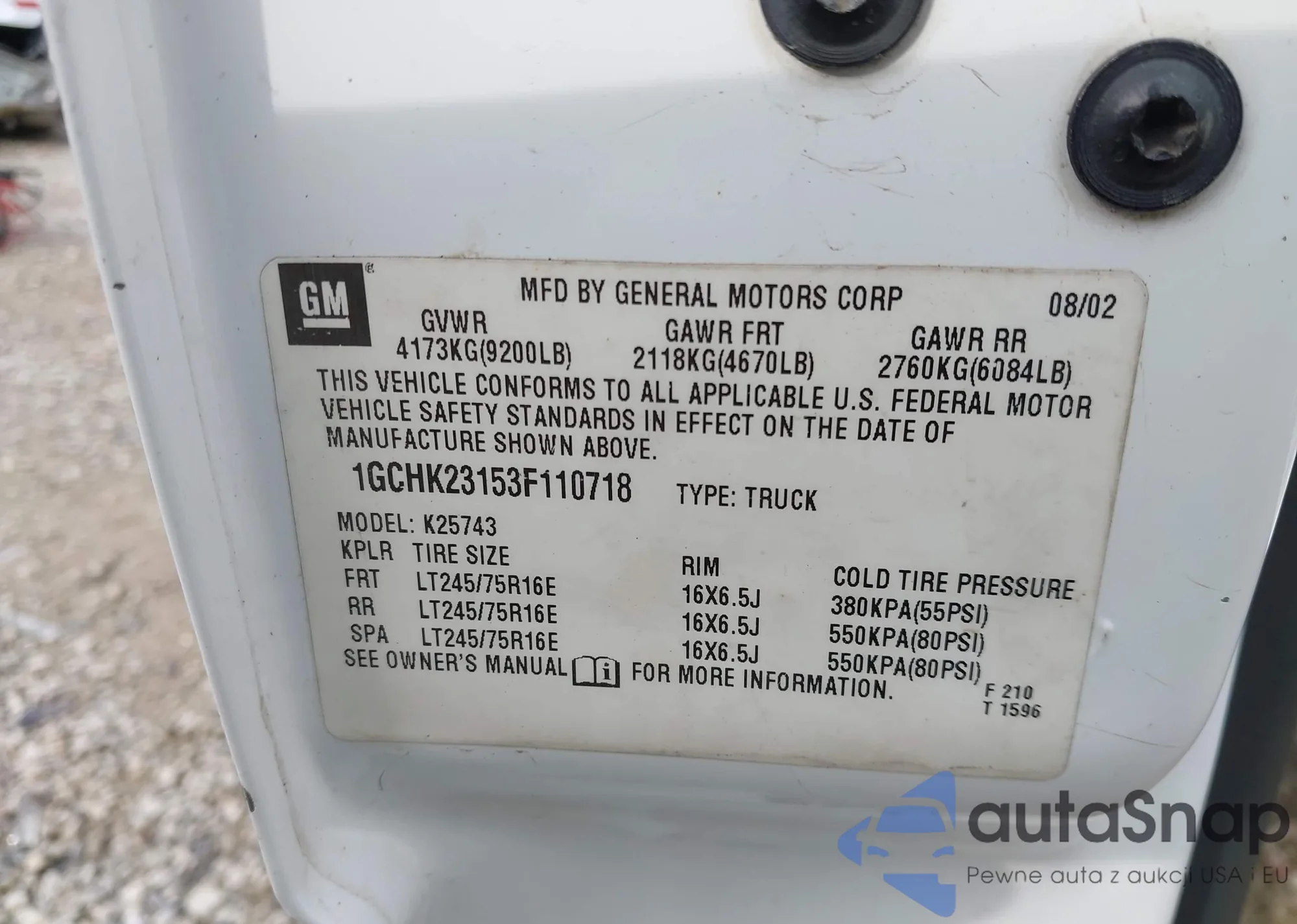 LOT: 41934741 VIN: 1GCHK23153F110718