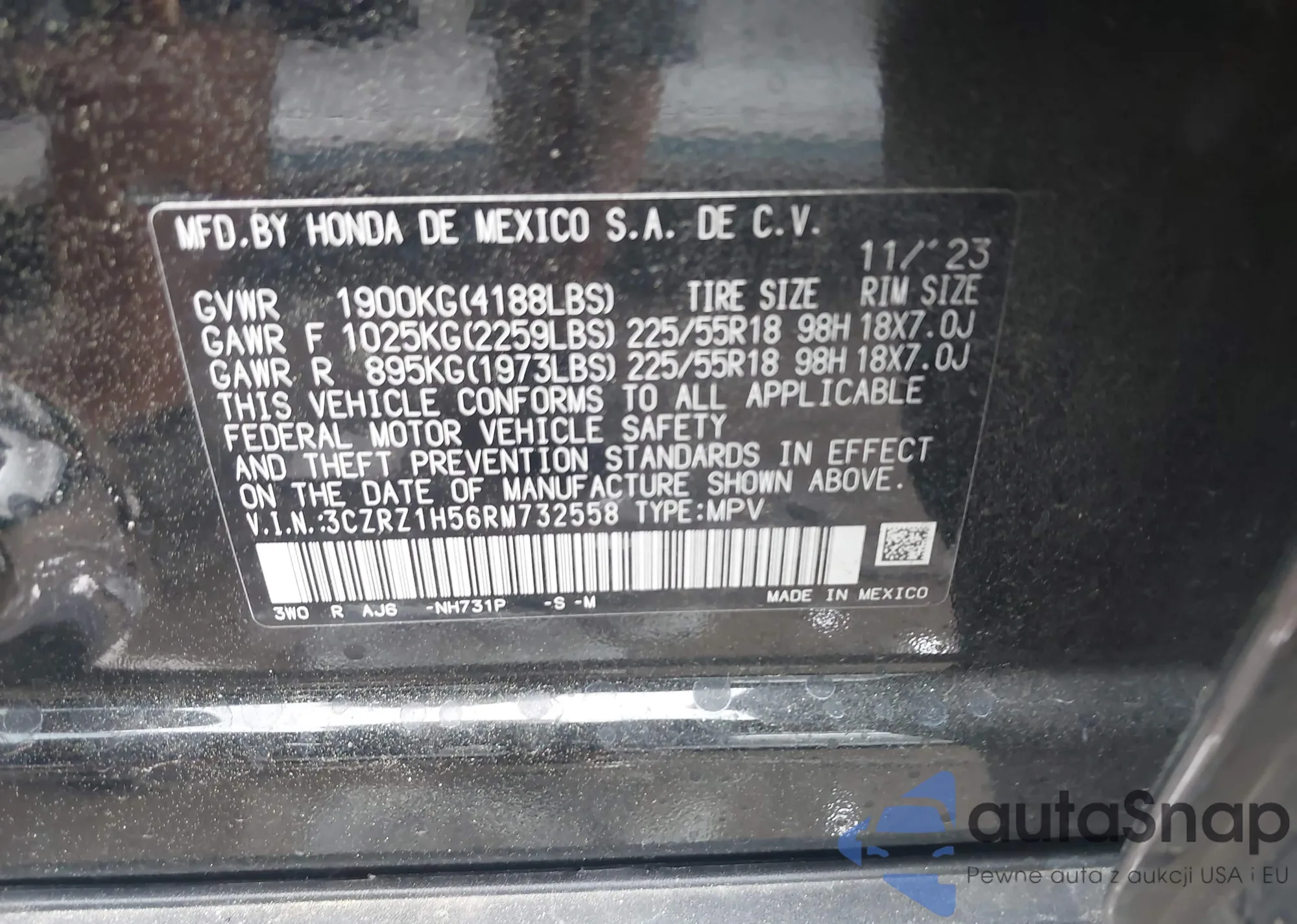 LOT: 41953514 VIN: 3CZRZ1H56RM732558
