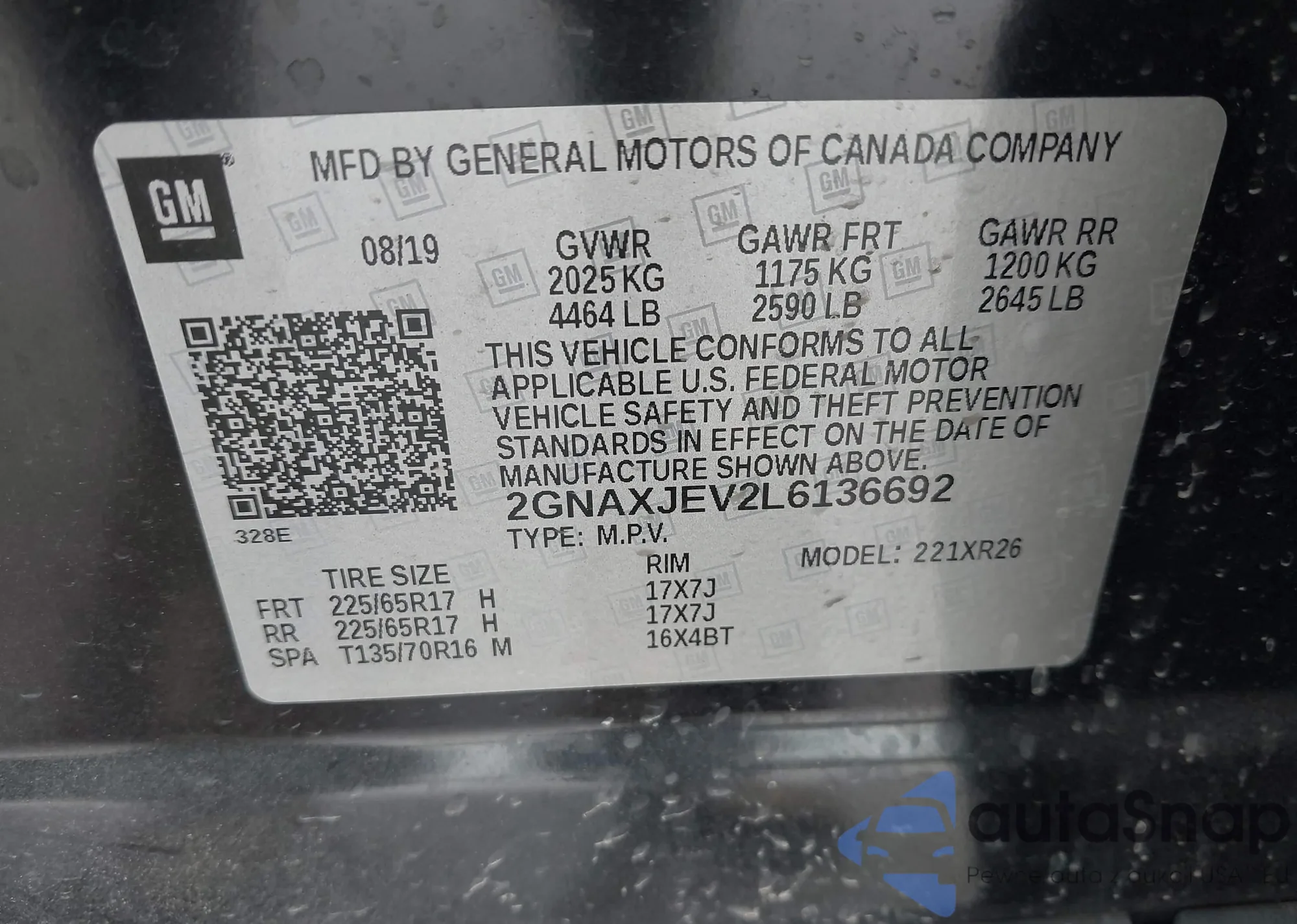 LOT: 41942343 VIN: 2GNAXUEV9L6101987