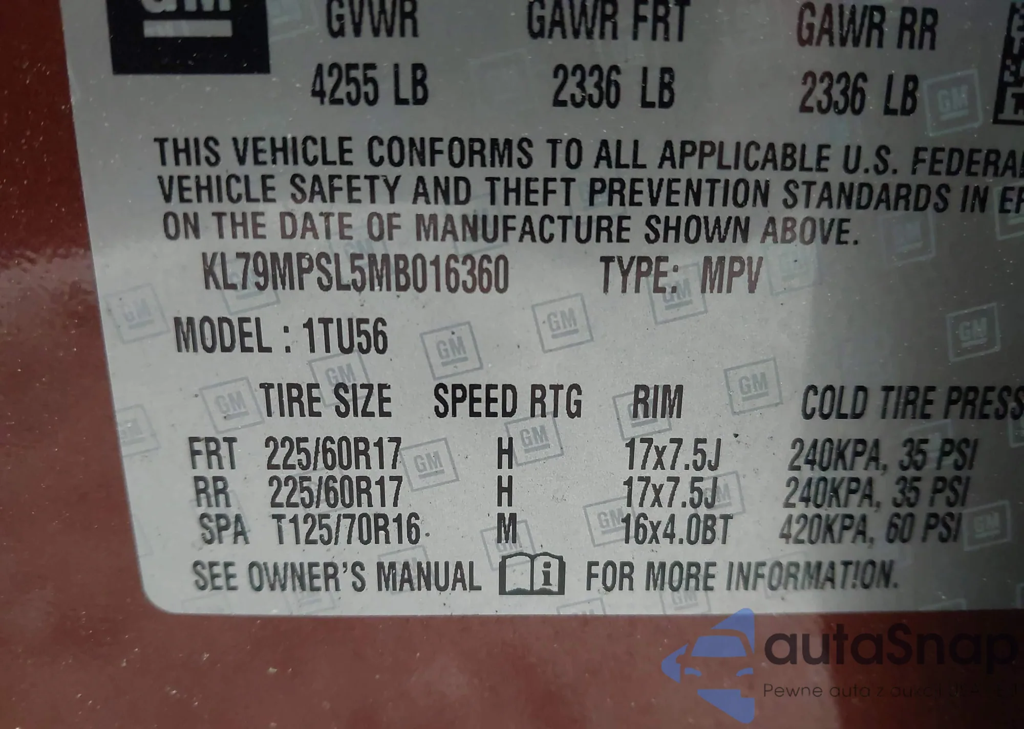 • VIN 2GNAXUEV9L6101987