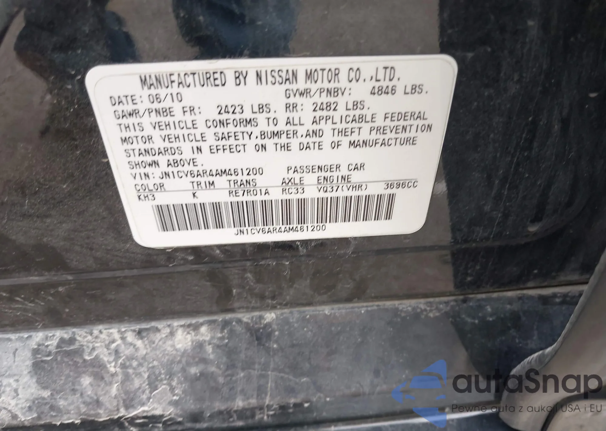 LOT: 41956725 VIN: 5NPEB4AC1DH575720